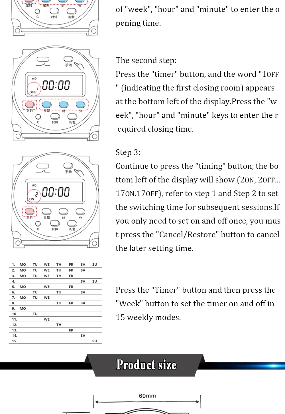 Comprar Interruptor de temporizador CN101A, Mini interruptor de tiempo programable, cc 12V, 24V, 110V, 120V, 220V, 230V, 240V, LCD Digital, Semana de alimentación, relé 8A a 16A