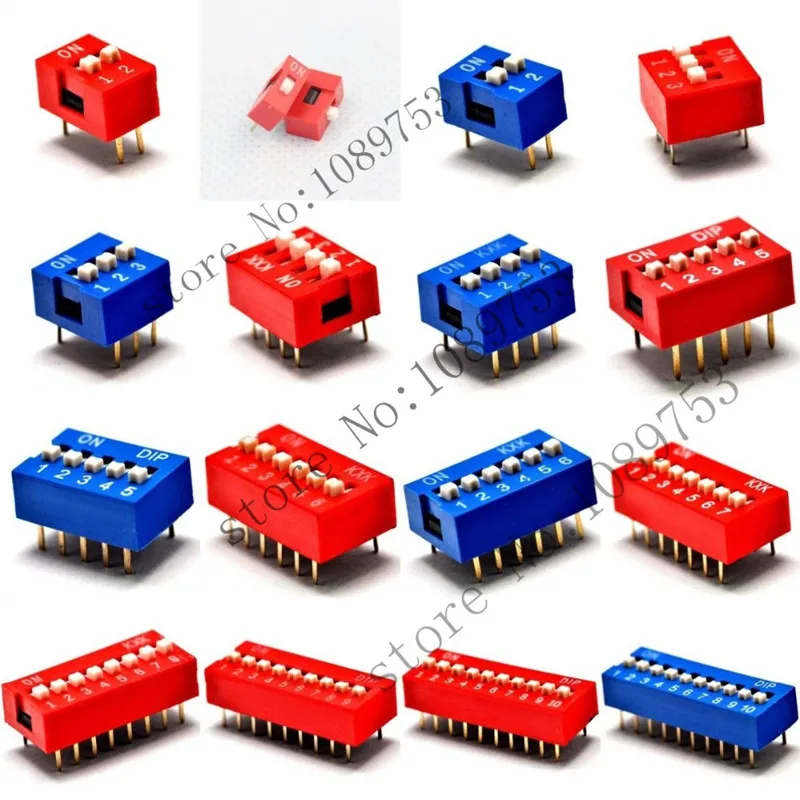 Comprar Interruptor de tipo deslizante de paso, interruptor DIP rojo/azul de 2,54mm, 1P/2P/3P/4P/5P-10P, nuevo, 10 Uds.