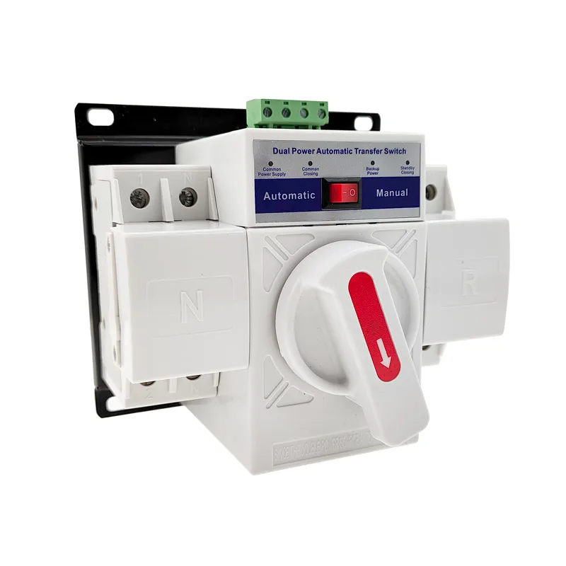El interruptor automático de doble potencia (denominado fuente de alimentación doble) es adecuado para sistemas de suministro de energía con CA 50/60Hz, voltaje de trabajo nominal 230V, 400V y corriente de trabajo nominal inferior a 63A. Adecuado para cortes de energía no prolongados, la conversión opcional entre dos fuentes de energía se puede hacer según la demanda.