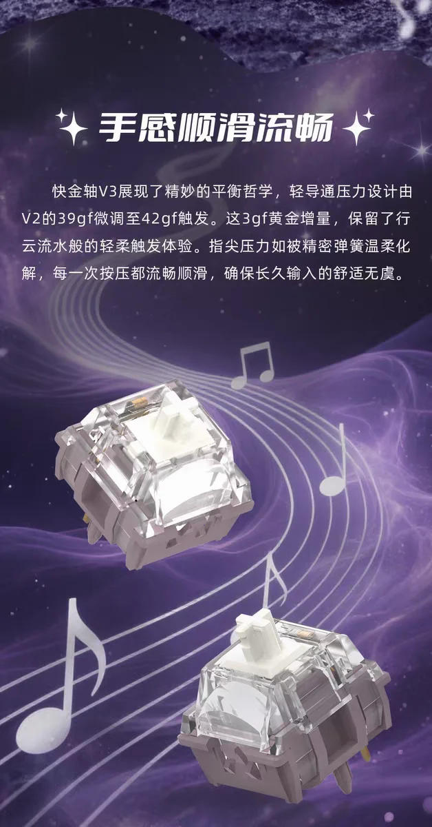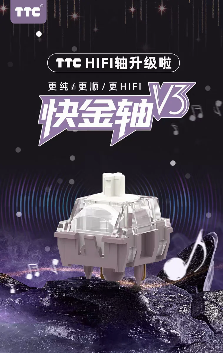 TTC Quick Gold V3 Switch HIFI Stone Mahjong Sound más puro más suave POM lineal de 5 pines RGB para interruptores de teclado mecánicos personalizados