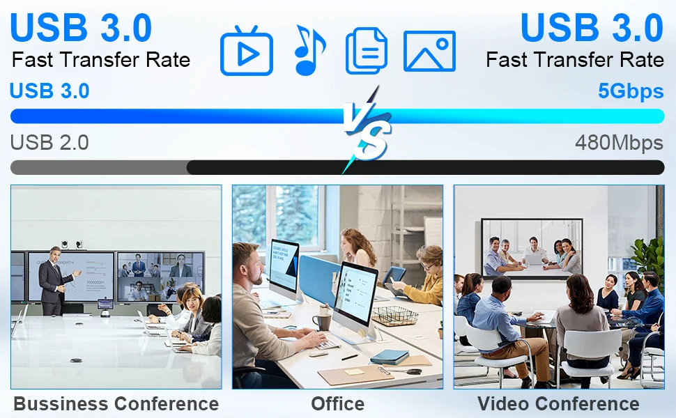 Admite una velocidad de transferencia de datos de 5Gbps, puede transferir archivos en segundos, mucho más rápido que USB 2,0.