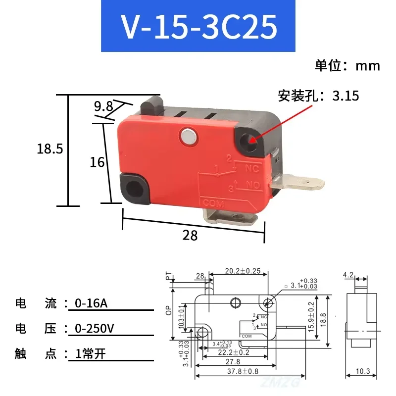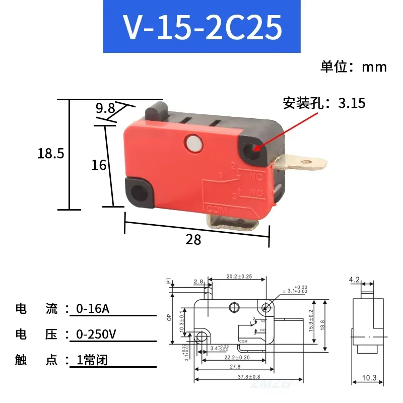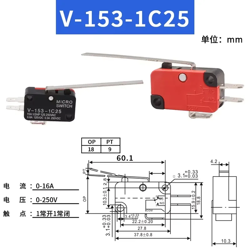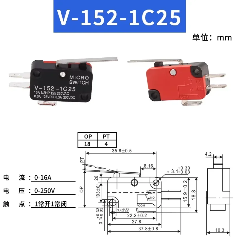 1/5 Uds interruptor de viaje microinterruptor autorreinible V-15-1C25 V-151-1C25 V-152-1C25 V-153-1C25 V-154-1C25 V-155-1C25 V-156-1C25
