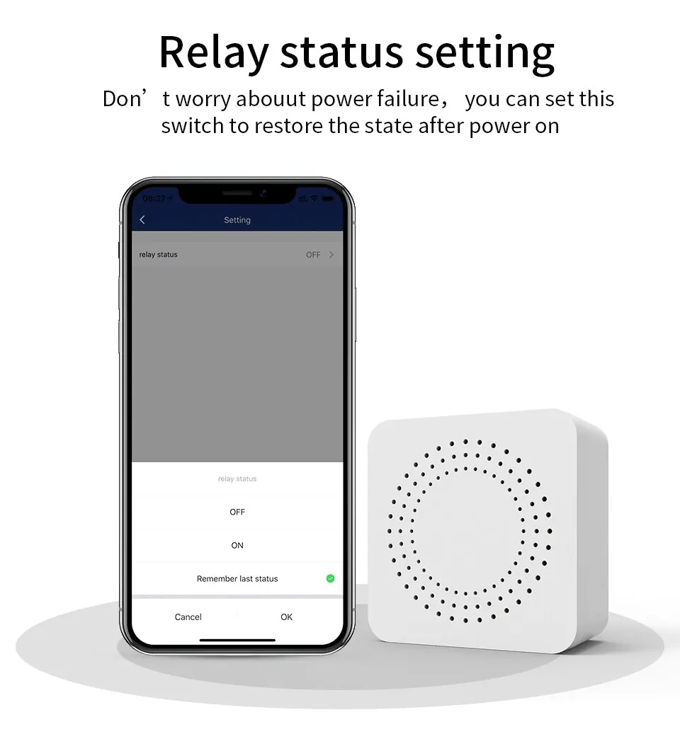 No se preocupe por un corte de energía, puede configurar este interruptor para restaurar el estado después del encendido.
