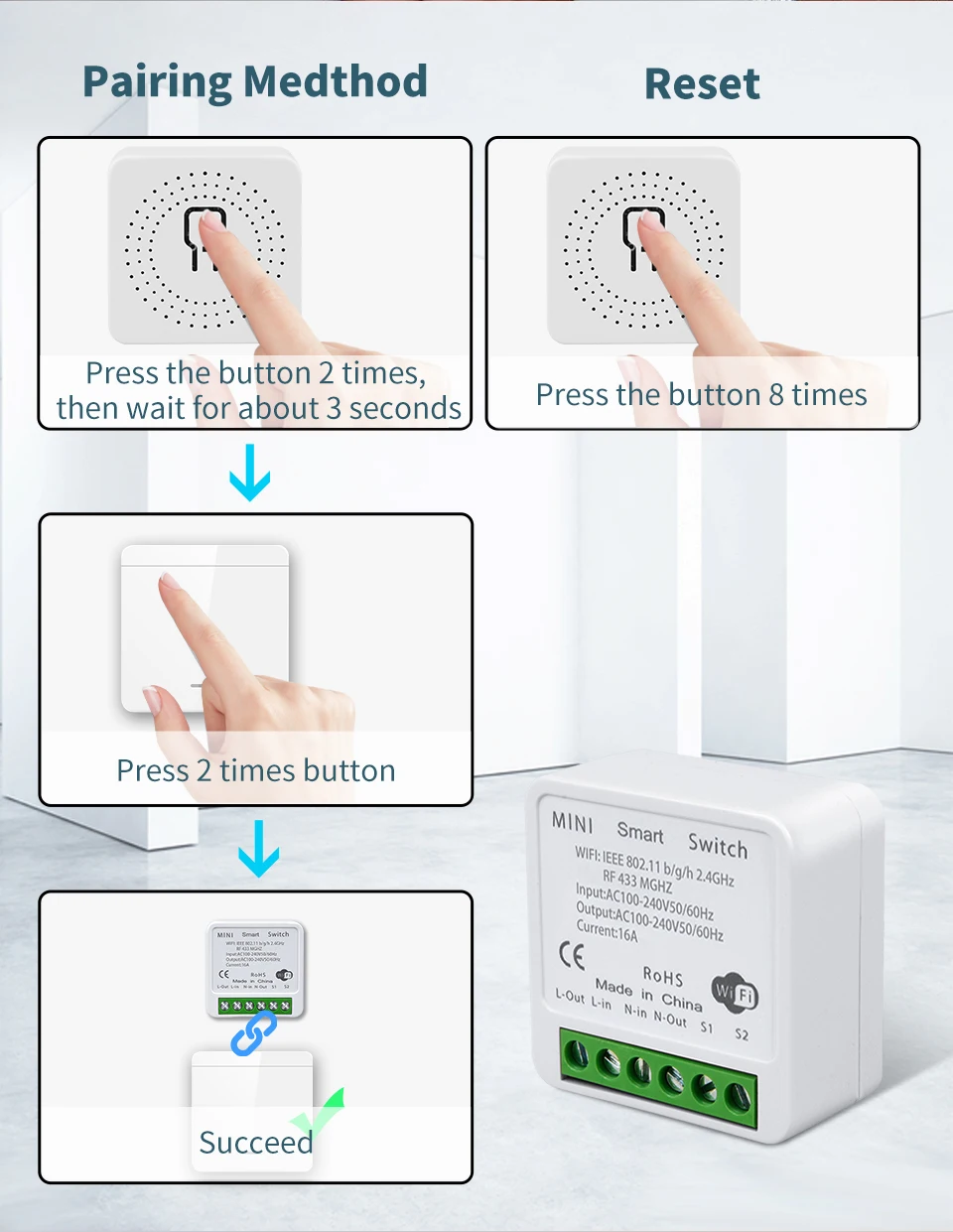 El controlador de relé es WiFi + RF, el interruptor de pared es solo RF.El interruptor de pared en sí no puede controlar el encendido de las luces apagadas.Necesita funcionar juntos con el receptor WiFi + RF.