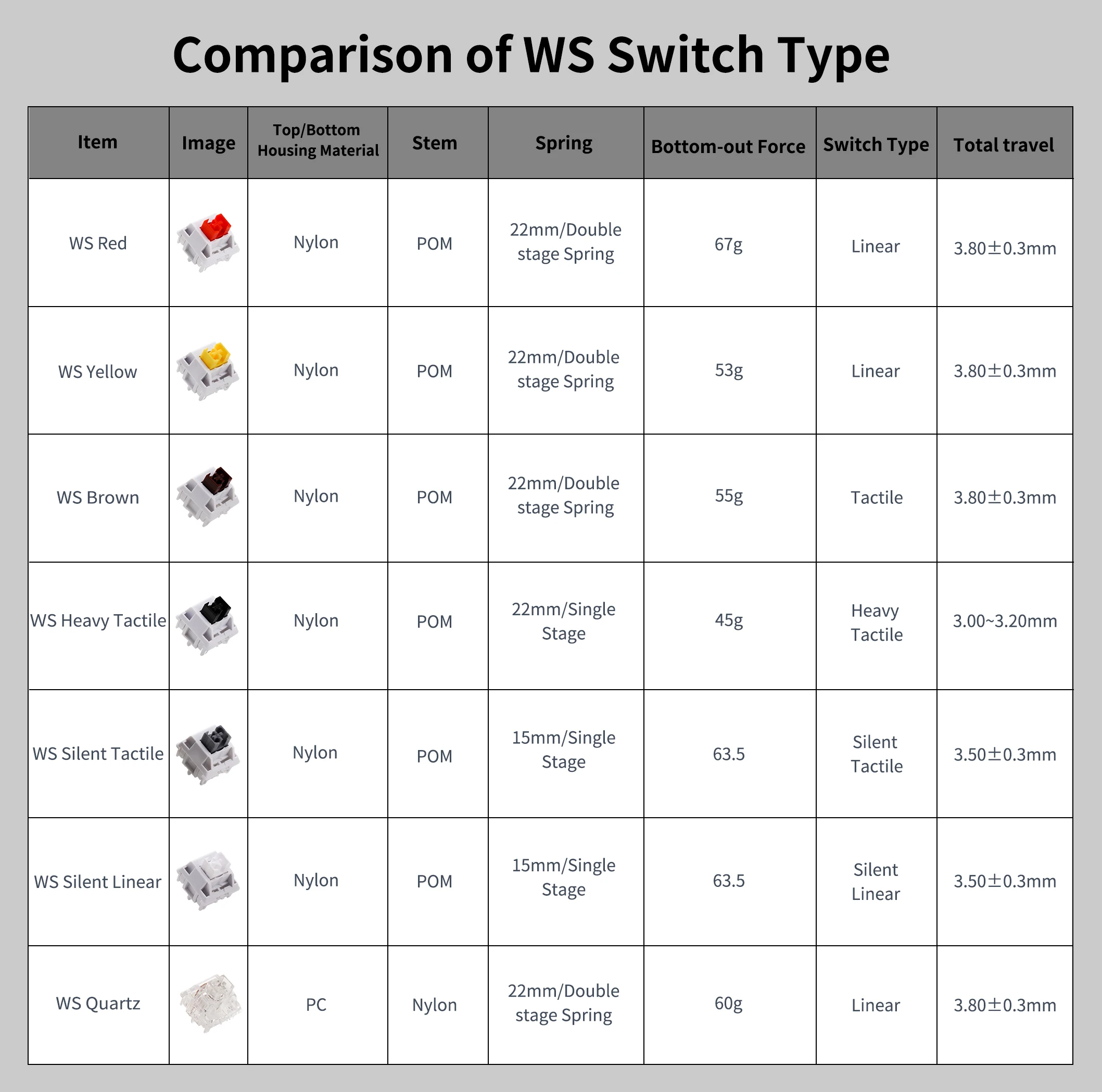 Interruptor Wuquestudio WS, carcasa de PC completamente translúcida, vástago de nailon, retroalimentación lineal, 35 uds, teclado mecánico personalizado Fot