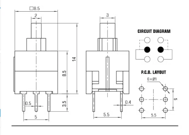 Comprar Interruptores de botón de consola de enclavamiento, Cabeza Cuadrada, doble fila, 6 pies, 8,5x8,5 MM, 10 piezas