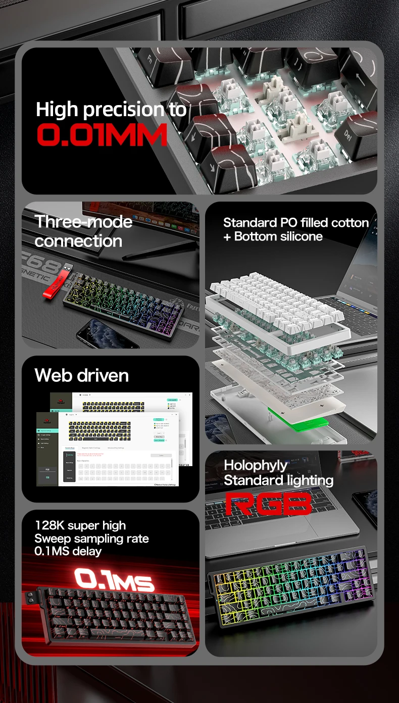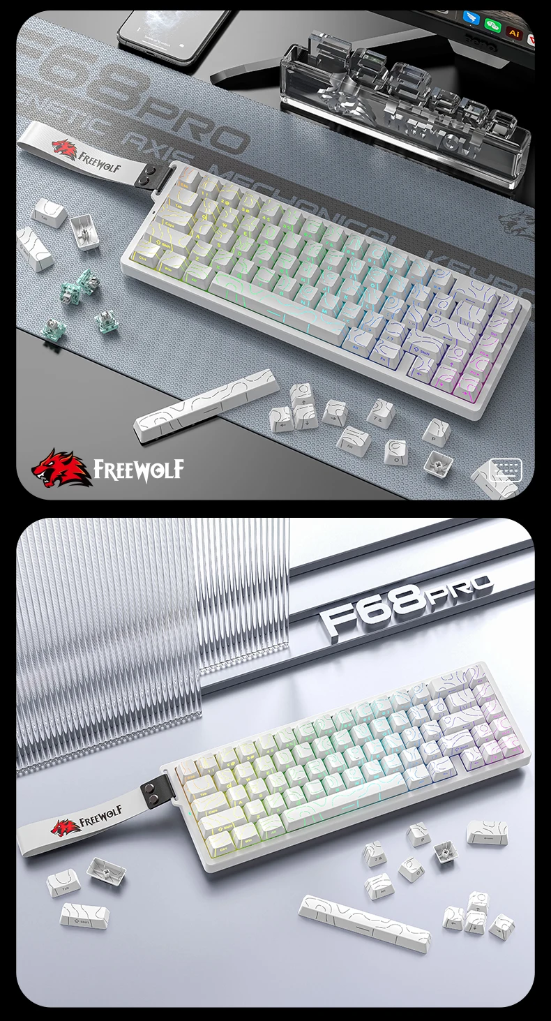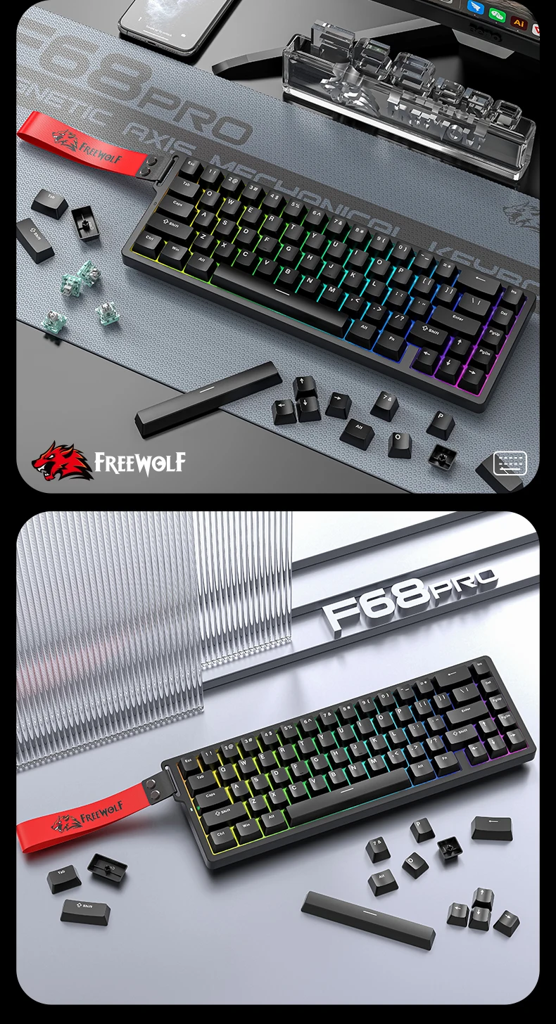 ¡¡Excelente producto!! Envío rápido de 4 días hasta que llega a Brasil, luego tomó una semana para llegar a mi casa. Teclado magnético muy bien hecho, un poco pesado, con un lado de metal y una parte superior de plástico reforzado que se siente como si fuera todo de metal. F68 Pro es cableado, Bluetooth y 2. 4G, esa memoria USB está debajo del pie del teclado, la iluminación es bastante buena pero no se ve cuando está de lado, solo en la parte superior. Las teclas no tienen iluminación RGB, son solo teclas negras con pintura blanca que indica qué letra es. En cuanto a la experiencia de escritura, es encantadora con un sonido agradable y suave, y puedes cambiar la sensibilidad de activación de la tecla en el sitio web con 0. 01 a 3. 00, la batería parece durar bastante bien. Estoy usando la batería que venía con ella. El teclado se apaga cuando el ordenador se apaga, y puedes configurar en el sitio web cuánto tiempo permanece encendido antes de que se apague solo, ahorrando así la batería. ¡¡Compra sin miedo!! Compré el F68 Pro durante la venta relámpago por 190 reales, ¡totalizando 250 con impuestos!