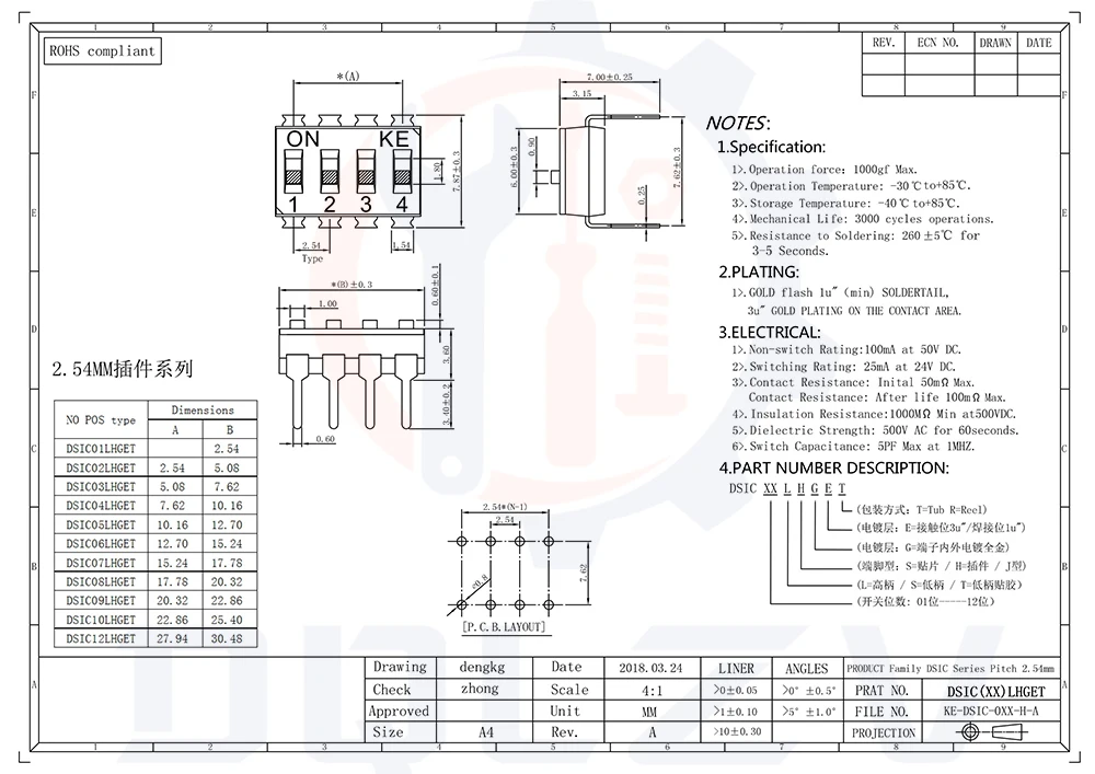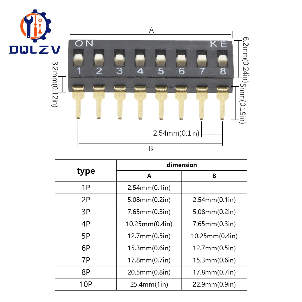 Comprar Interruptores de palanca DIP 2,54mm 1P/2P/3P/4P/5P/6P/8P/10P negro 2,54 MM interruptor SMD Pin chapado en oro