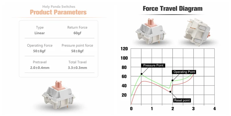 -Fabricado con tallos de Halo Clears o Halo True, con la carcasa que se encuentra en los interruptores Invyr Panda, los interruptores Holy Panda combinan lo mejor de dos mundos.