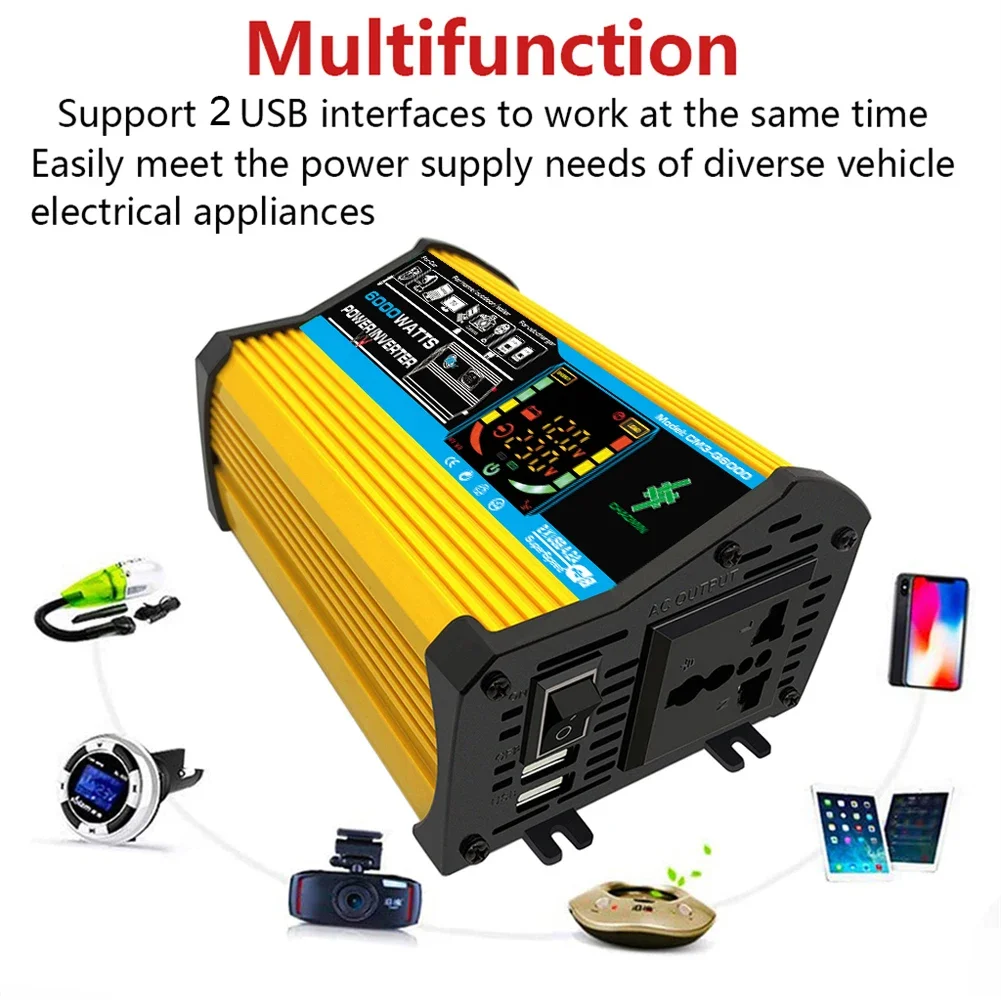 Especificación:Certificación: NINGUNOOrigen: China continentalVoltaje de entrada: CC 12 V (10,5 V-15 V)Voltaje de salida (opcional): CA 220 V/220 VPotencia nominal: 500WMaterial: aleación de aluminio + ABS