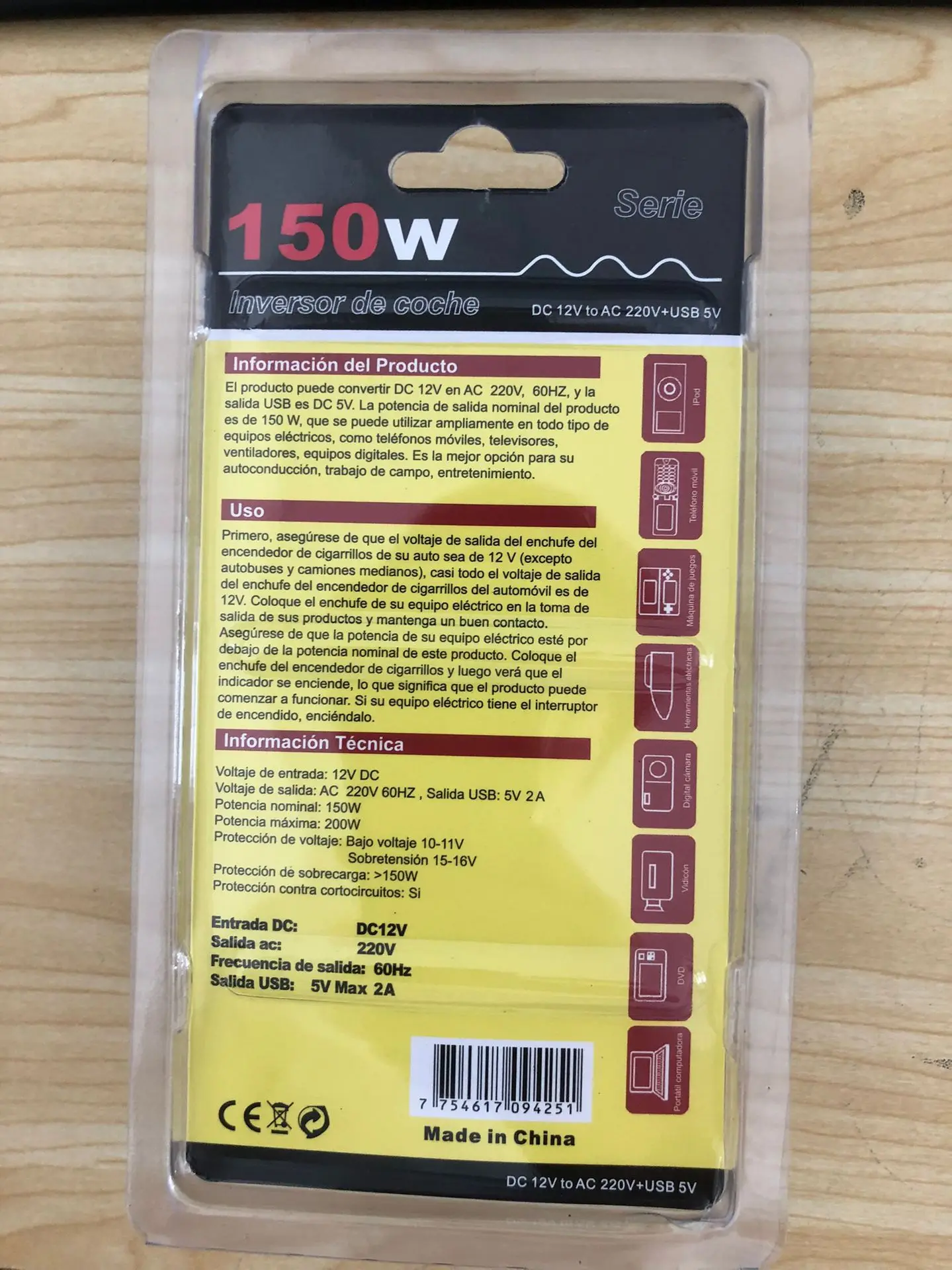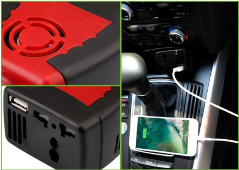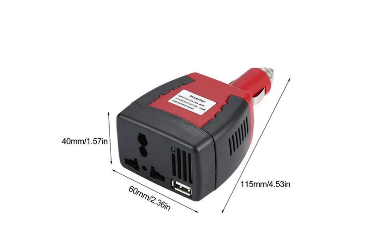 Inversor de corriente para coche de 12V a 220V, Adaptador convertidor de voltaje automático portátil, inversor de cargador USB multifuncional para cocheEl inversor utiliza la fuente de alimentación de 12V del encendedor de cigarrillos del automóvil para convertirla en una fuente de alimentación de 220V/110V, proporcionando energía a dispositivos como la Oficina, la comunicación, y equipos de entretenimiento que usan voltaje de 220V. Es una herramienta común para conducir por negocios y turismo. Conecte directamente este producto a la toma del encendedor de cigarrillos del automóvil, y la alimentación de 12V CC del automóvil se convertirá en la alimentación de 220V CA de uso común. Es ampliamente utilizado en diversos dispositivos eléctricos, como teléfonos móviles, ordenadores portátiles, cámaras, televisores pequeños, maquinillas de afeitar, CD de música, MD, DVD visuales, ventiladores, humidificadores, purificadores de aire, cargadores de batería y otros aparatos con un consumo de energía inferior a 150W. Resolvió con éxito el problema del consumo de electricidad en vehículos para propietarios de automóviles, trabajadores de oficina, trabajadores de campo, turistas, trabajadores de oficina móvil y vehículos especializados.