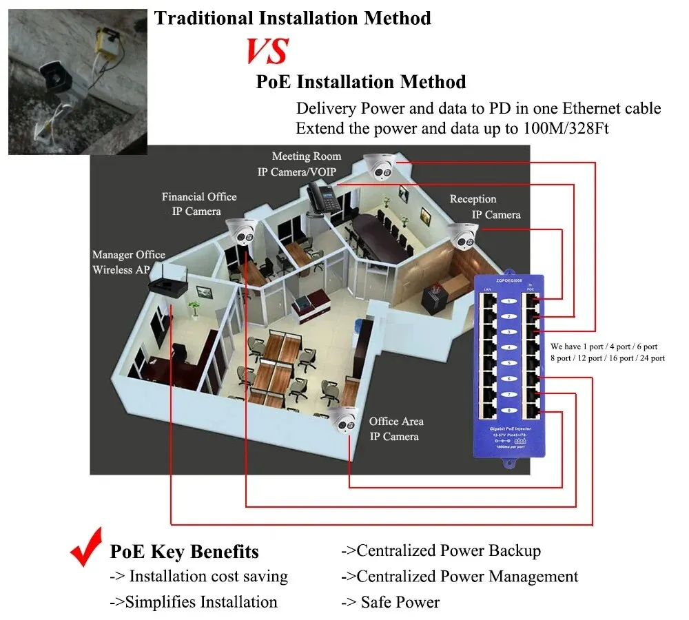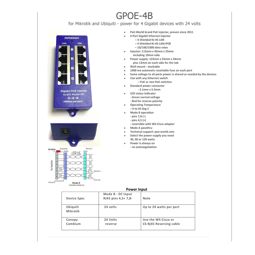 Comprar Inyector de 4 puertos Gigabit PoE Midspan 24V 48V modo de operación B para cámara IP, MikroTik y otros dispositivos de red