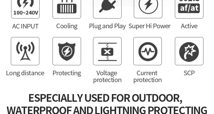 Comprar Inyector de energía Ethernet para exteriores, superpotencia, 90W, 65W, impermeable, Gigabit, PoE, cámara IP, teléfono inalámbrico
