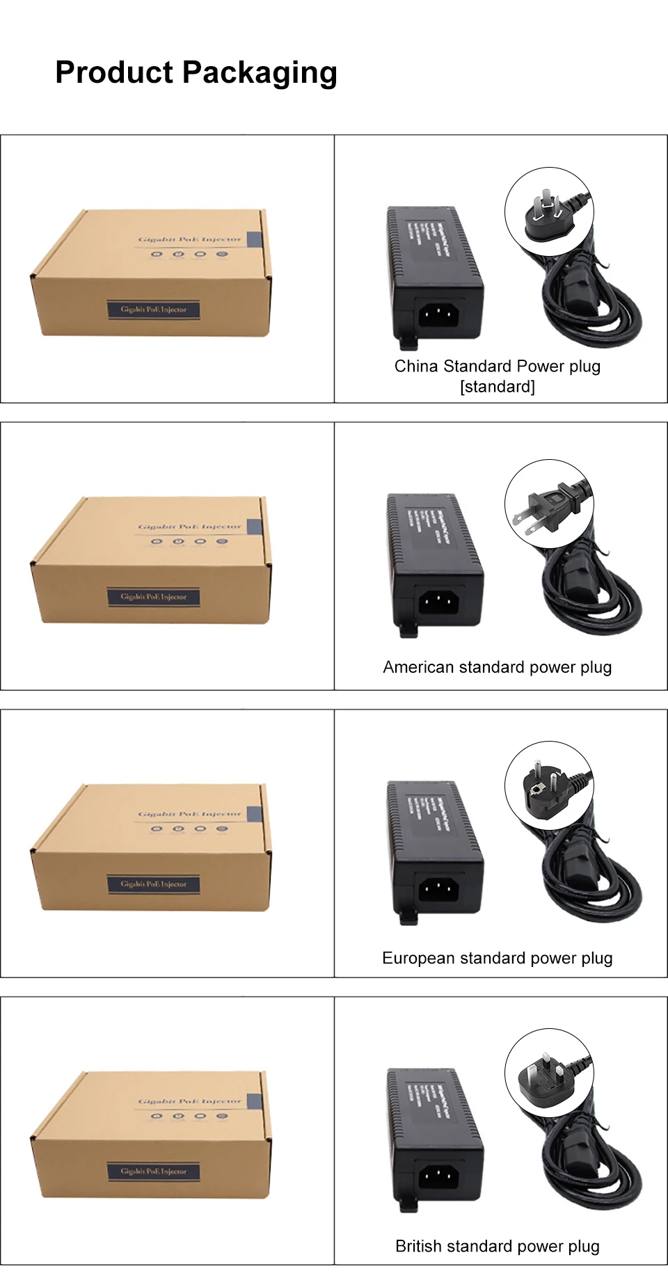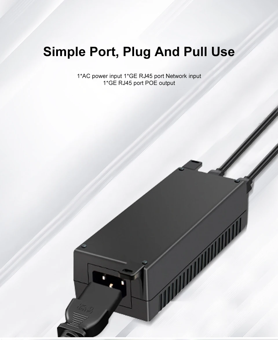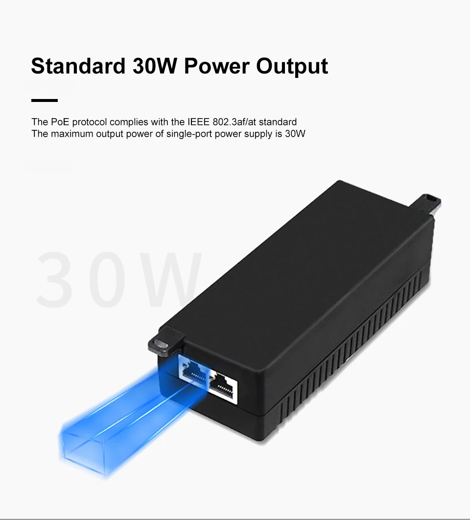 Comprar Inyector Gigabit POE, adaptador de fuente de alimentación de 52V, salida de dispositivo de 1000M, interruptor de fuente de alimentación estándar de 30w con Cable de CA, enchufe de EE. UU./UE/Reino Unido