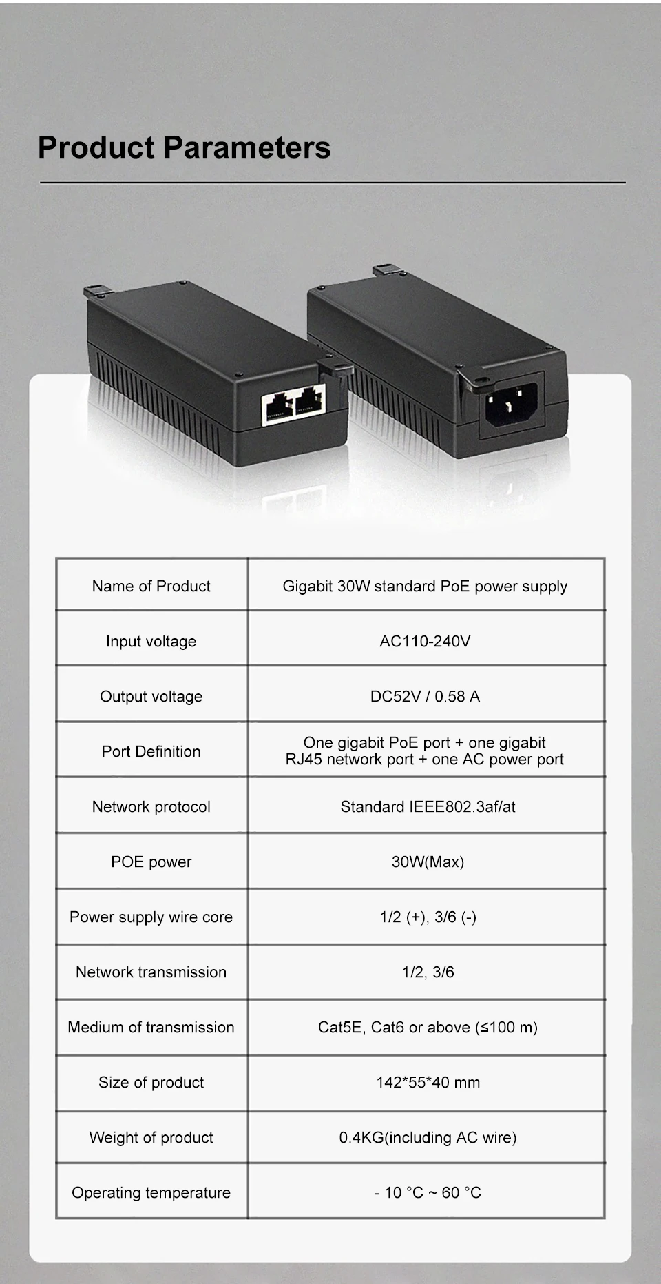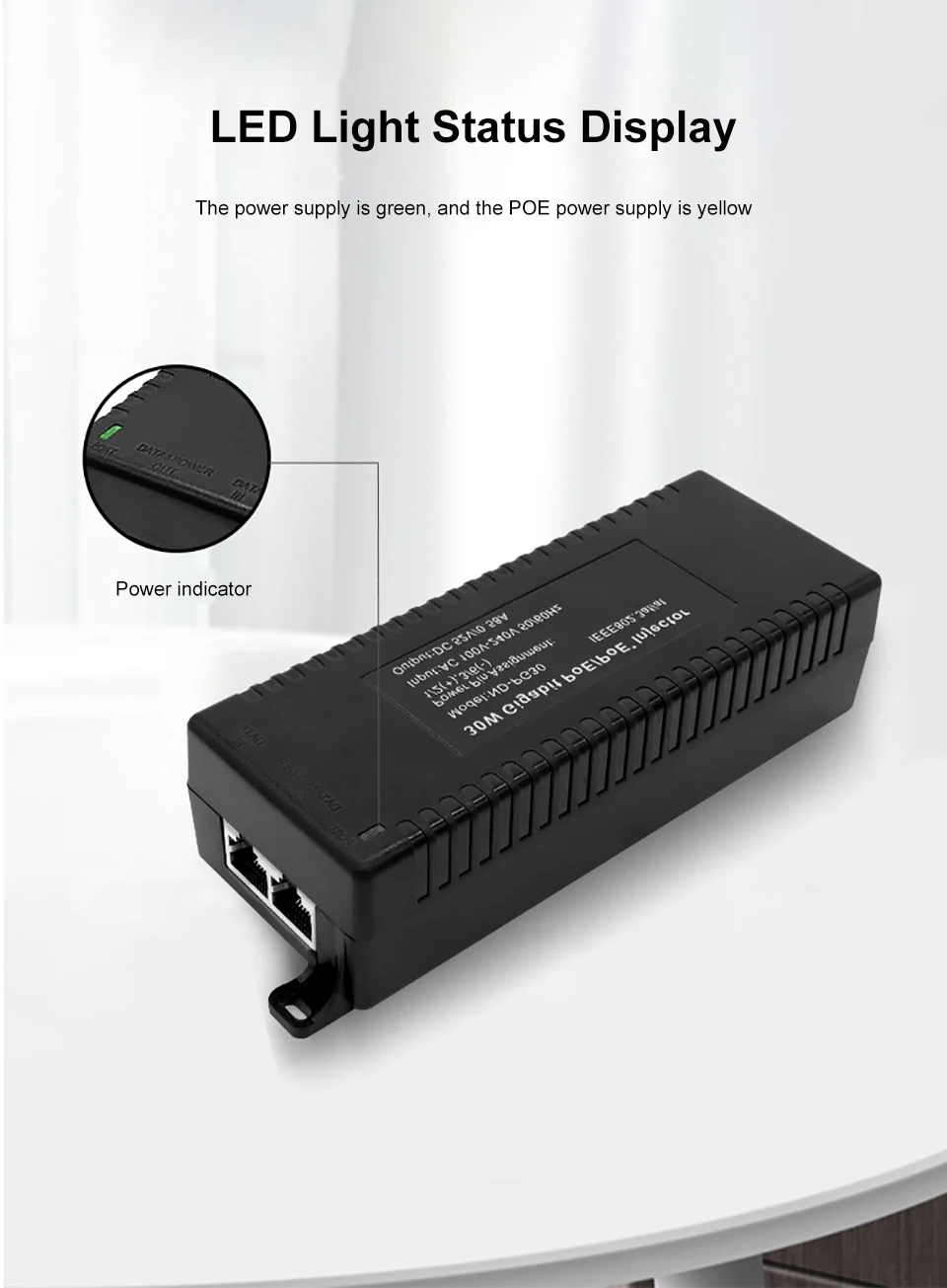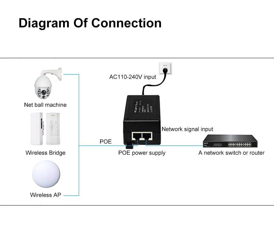 Comprar Inyector Gigabit POE, adaptador de fuente de alimentación de 52V, salida de dispositivo de 1000M, interruptor de fuente de alimentación estándar de 30w con Cable de CA, enchufe de EE. UU./UE/Reino Unido