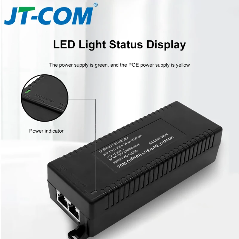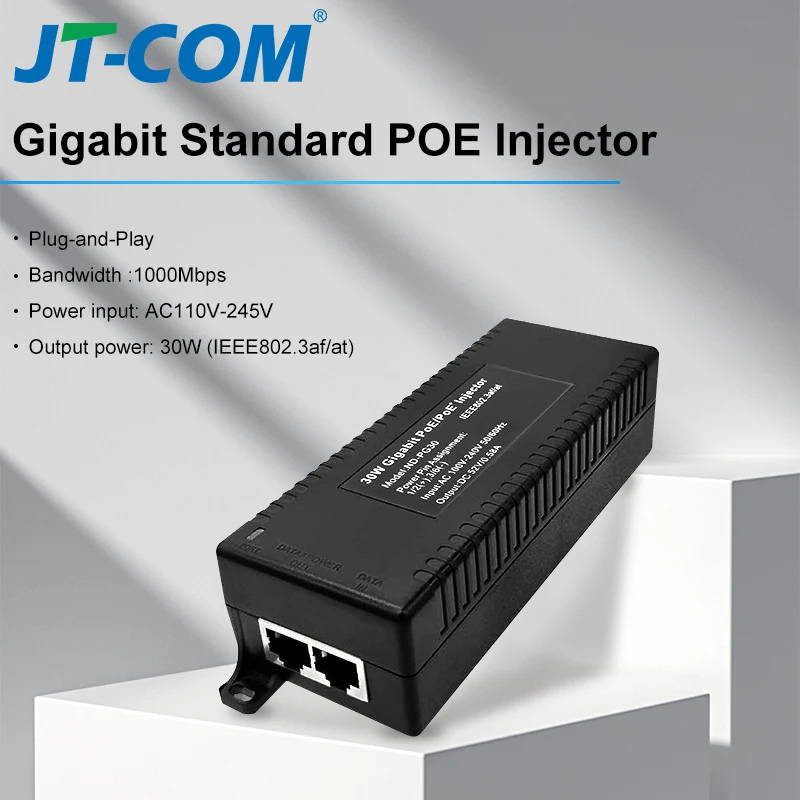 Comprar Inyector Gigabit POE, adaptador de fuente de alimentación de 52V, salida de dispositivo de 1000M, interruptor de fuente de alimentación estándar de 30w con Cable de CA, enchufe de EE. UU./UE/Reino Unido