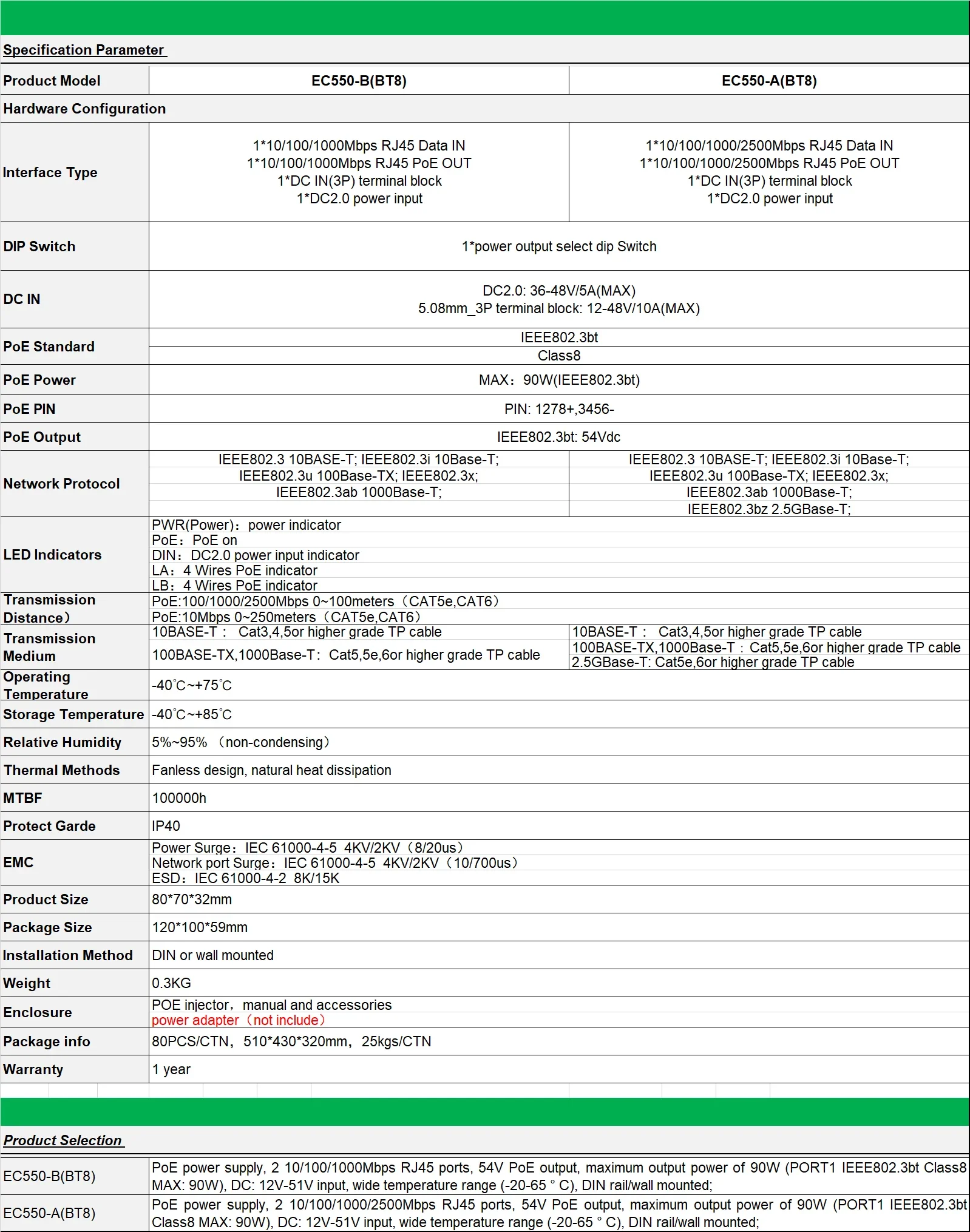 Comprar Inyector PoE activo industrial de doble potencia, 2,5G, 802.3BT, 12-48Vdc, voltaje de refuerzo con carcasa de aleación, protección de 15KV