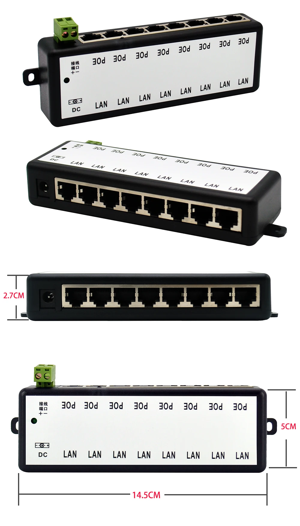 Comprar Inyector POE divisor para cámara CCTV, red POE, alimentación sobre Ethernet, IEEE802.3af, 4 puertos, 8 puertos, recién llegado