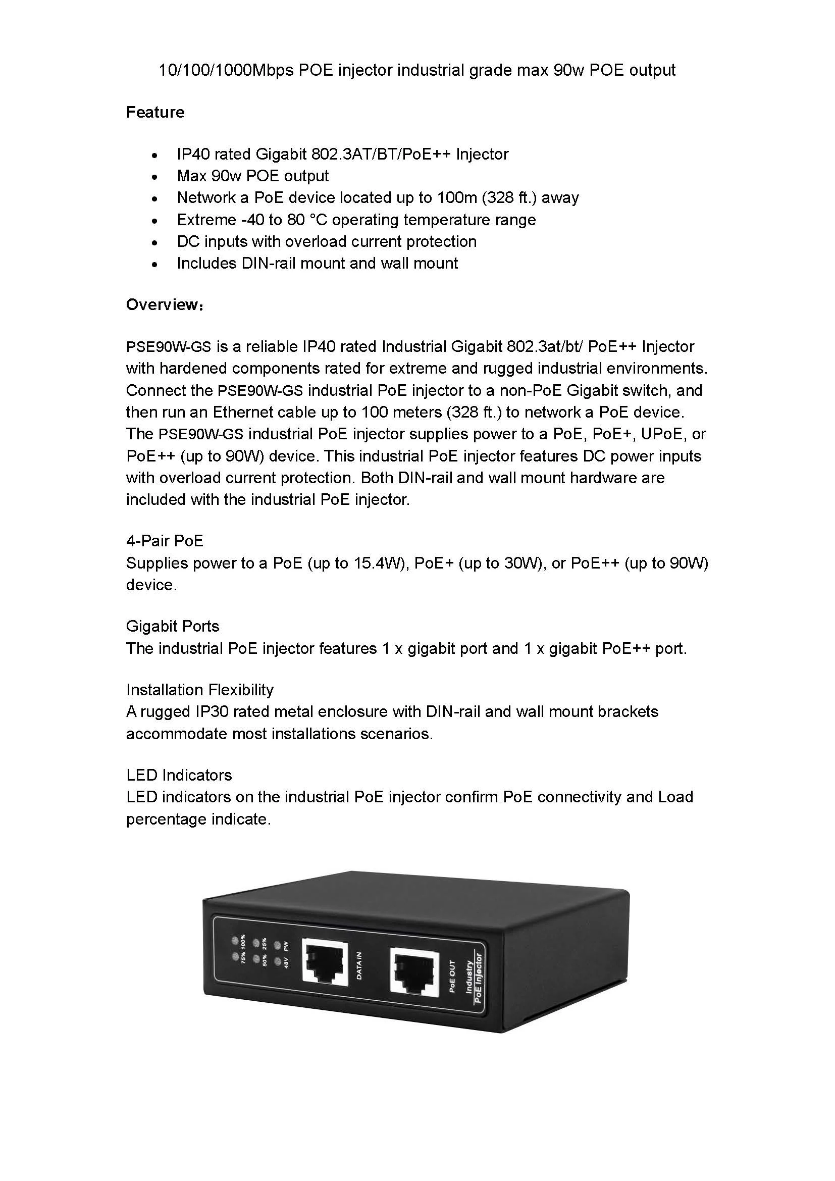 Tenga en cuenta que hay 2 versiones de este inyector industrial DIN 90W POE