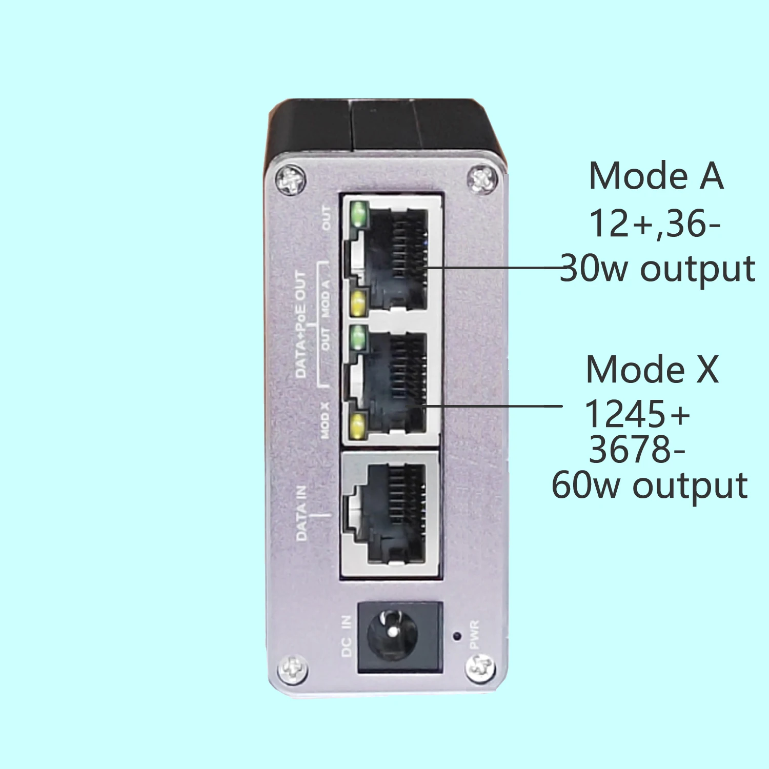 Comprar Inyector POE industrial gigabit | Máx60w | coincidir el modo de conexión POE 1236 y 12453678 | 24V/48V POE seleccionable | Instalación DIN/pared