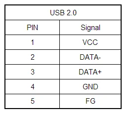 Señales USB: VCC, DATA+, DATA-, GND y FG