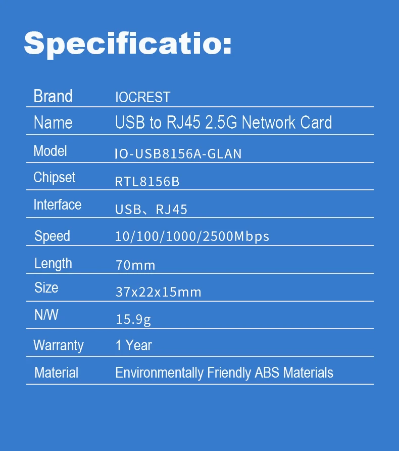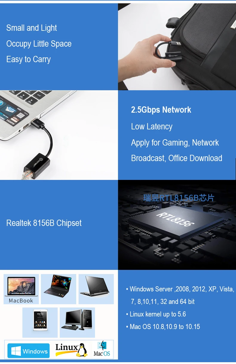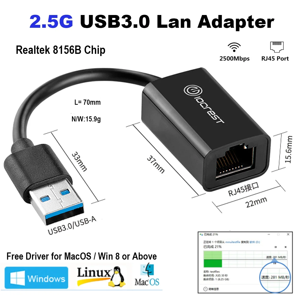 Comprar IOCREST 2500Mbps tipo C 2,5G tarjeta de red Ethernet con cable externo RTL8156 USB3.1 RJ45 convertidor adaptador Lan para Mac Win10