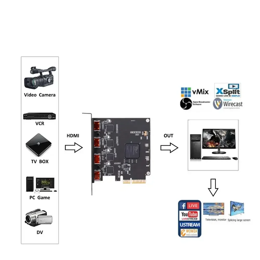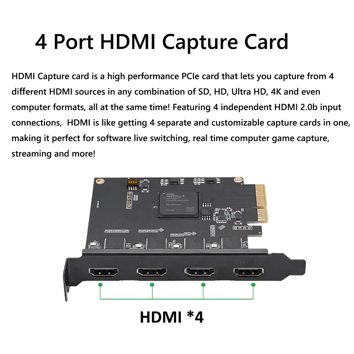 Comprar IOCREST 4 puertos HDMI compatible con Pcie X4 Quad HDMI grabadora 4K PCI-e tarjeta de captura conexión de entrada HD 4K de alto rendimiento