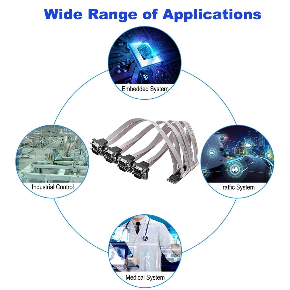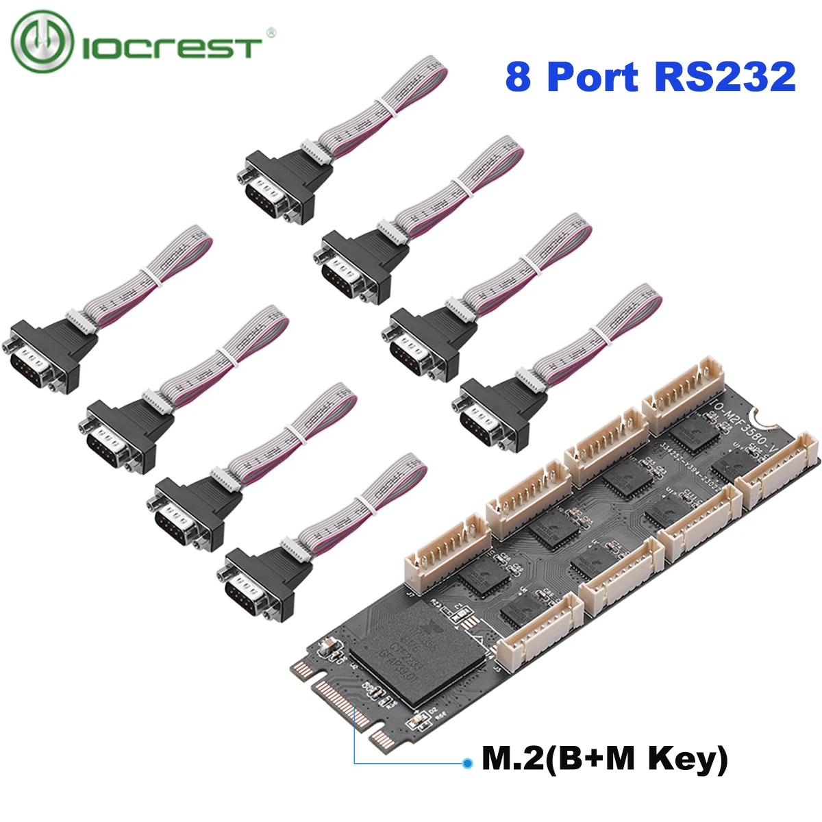Comprar IOCREST 8 puertos serie Rs232 Db9 M.2 B llave M tarjeta controladora de E/S M.2 Pcie 2,0 Gen1 2280mm tamaño incluye 8 Cable serie Db9
