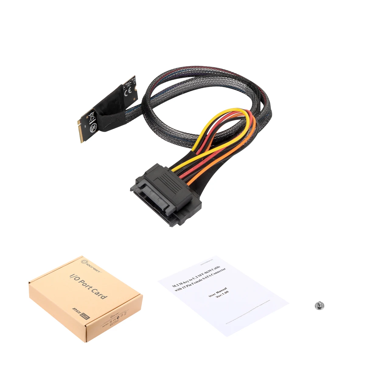 • 1 cable M.2 M-key a U.2 con conector SATA hembra de 15 pines