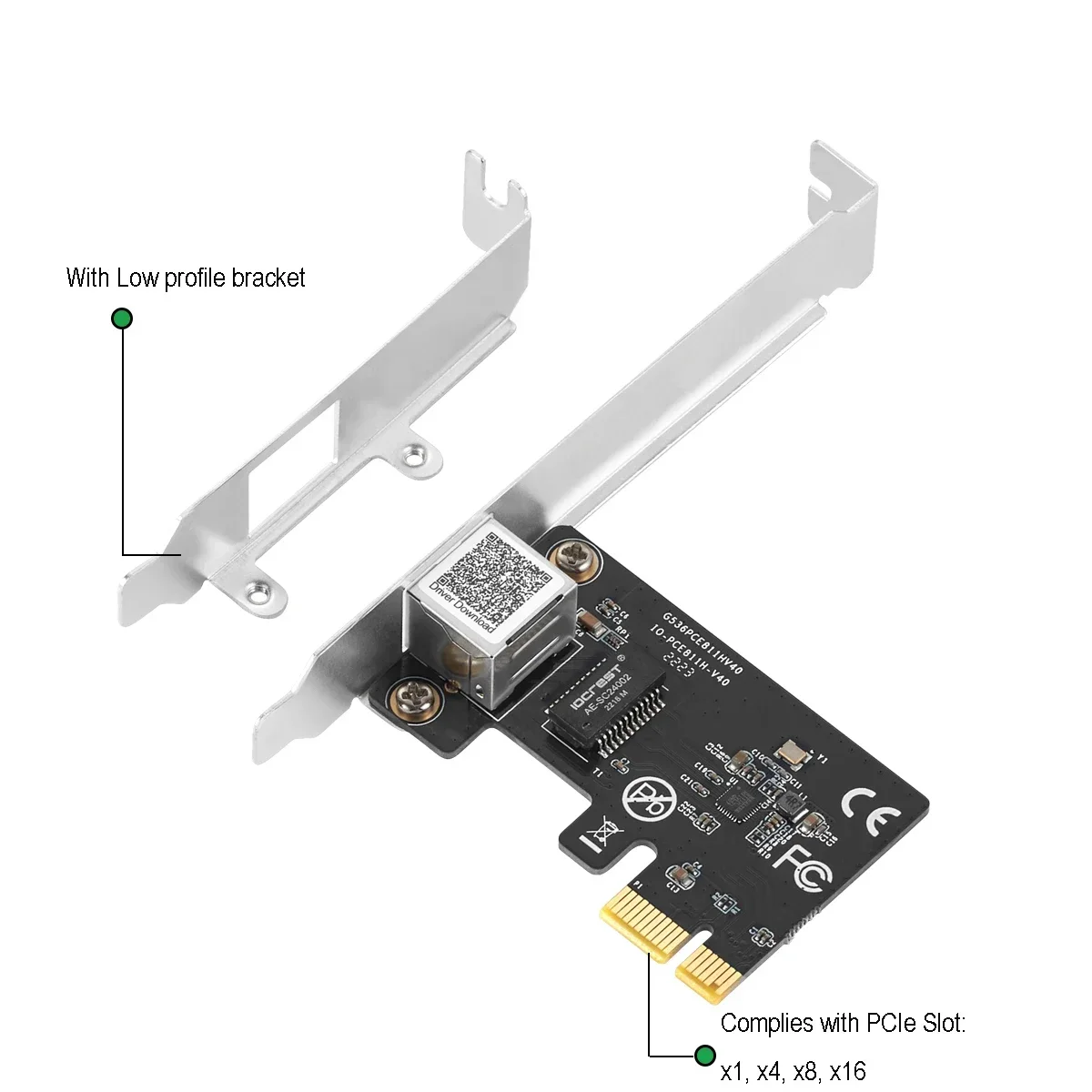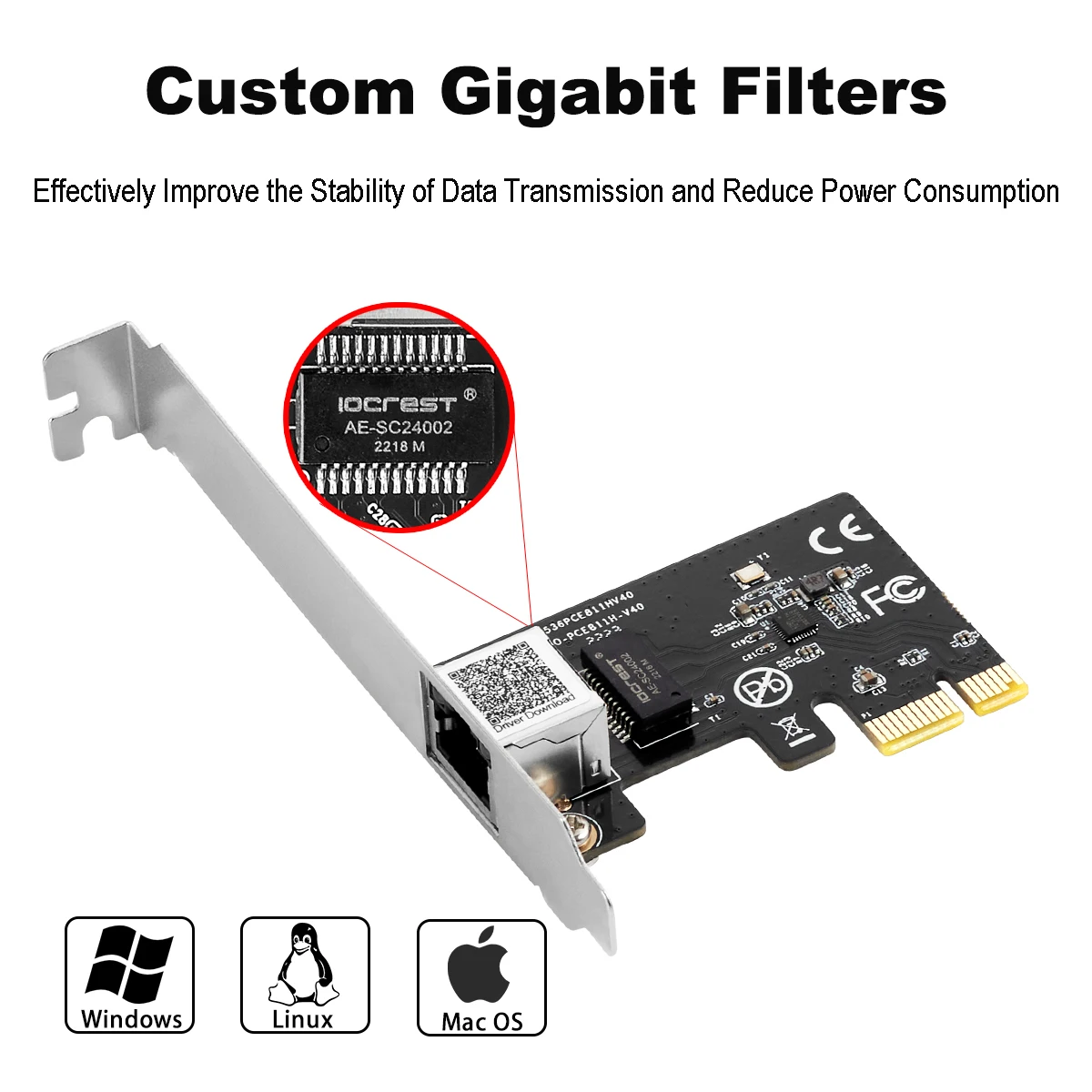 Comprar Iocrest Gigabit Ethernet Realtek Chip Pci Express Lan tarjeta controladora RTL8111H Pcie tarjeta de red RJ45 Nic