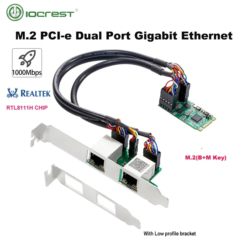 Comprar Iocrest M.2 (tecla B/M) interfaz pci-E módulos Gigabit Ethernet de doble puerto 1000Mbps 1G Nic Netwerkienda Realtek RT8111H Chipset