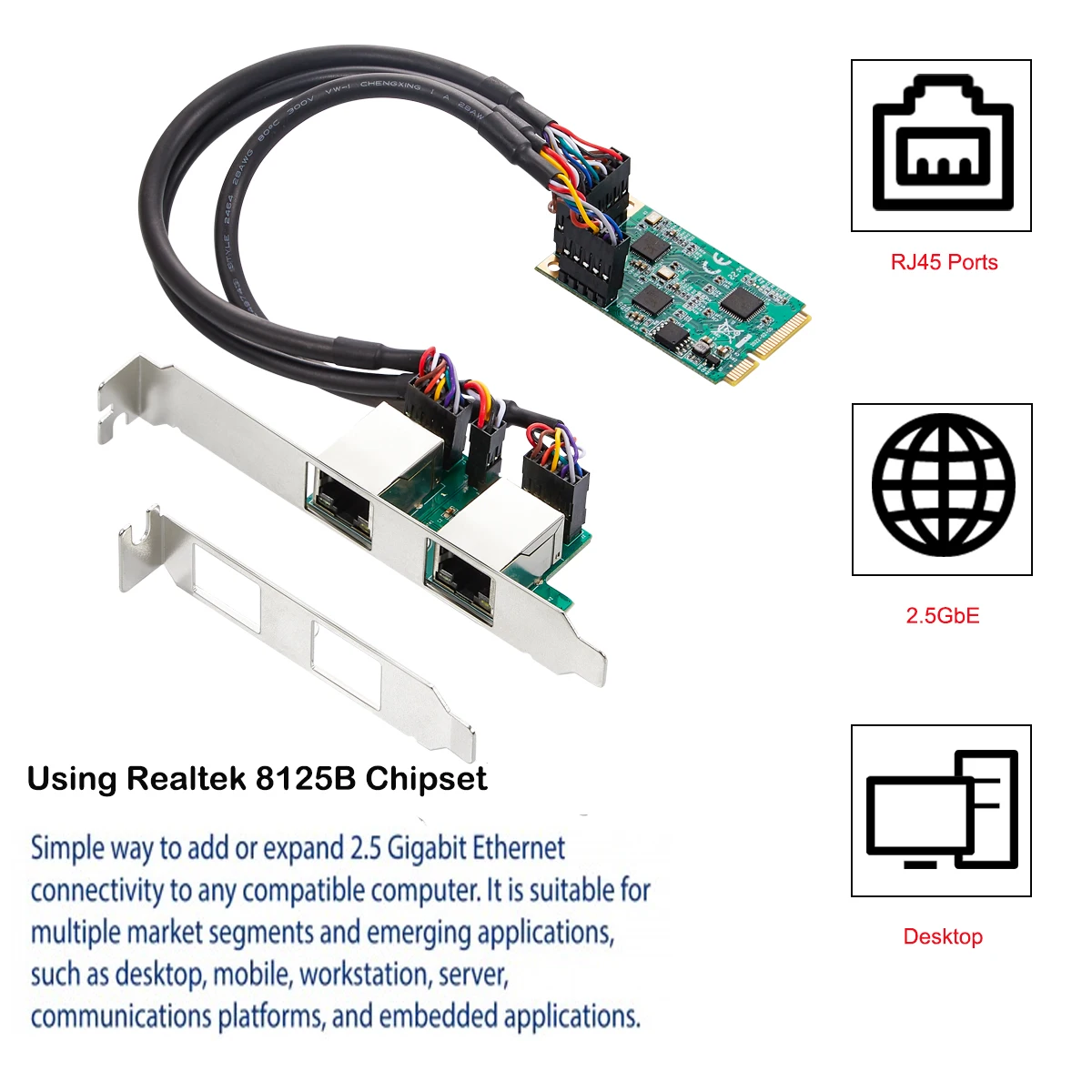 Comprar IOCREST-Mini tarjeta de red PCIe a RJ45, 2,5G, puertos duales, 2500Mbps, PCI Express, NIC, Lan, para el Chipset Realtek 8125B