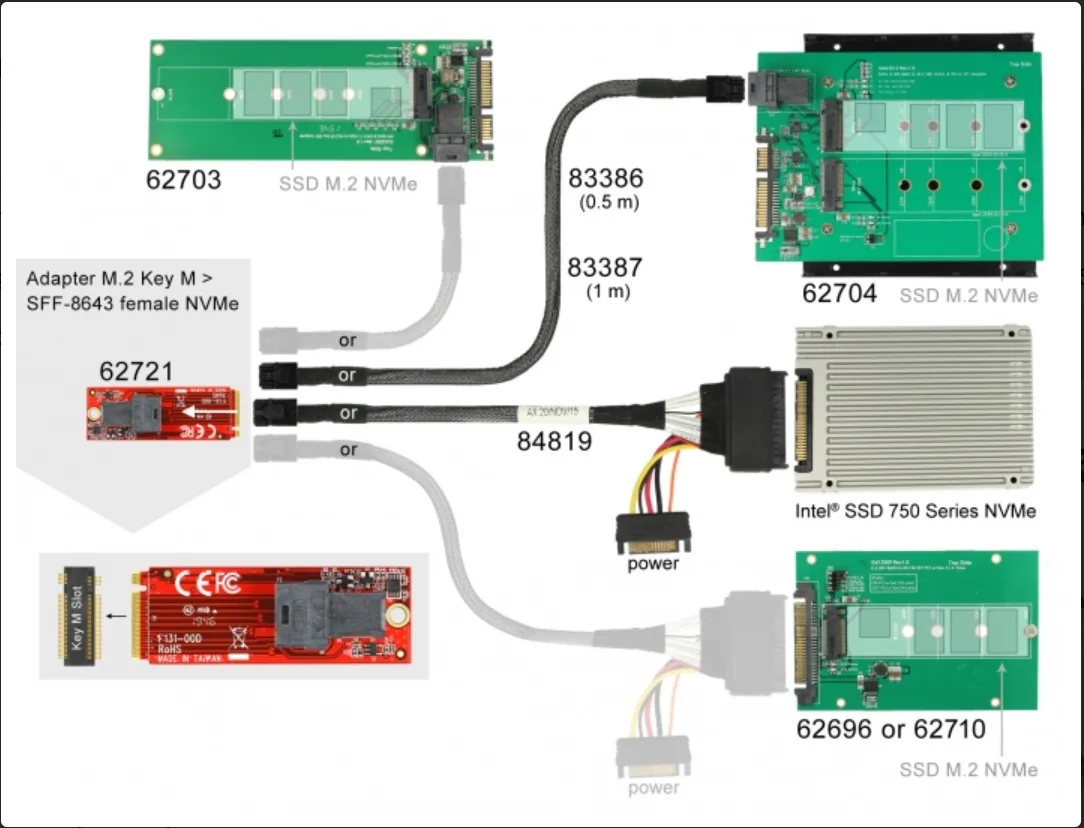 Este adaptador permite la conexión de una memoria NVMe, por ejemplo, U.2 SSD a través de la interfaz de la red a una ranura M.2.
