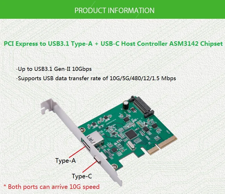 Comprar IOCREST-tarjeta controladora PCI Express A USB3.1, USB-C + USB3.1 tipo A, hasta USB3.1, Gen II, supervelocidad de 10gbps + ASM3142, Chipset