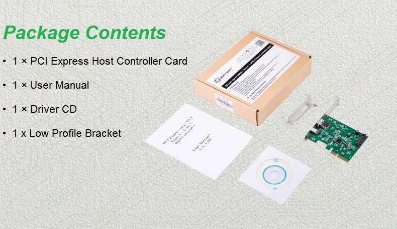 • 1 × Tarjeta controladora de host PCI Express a USB3.1 tipo A + USB-C