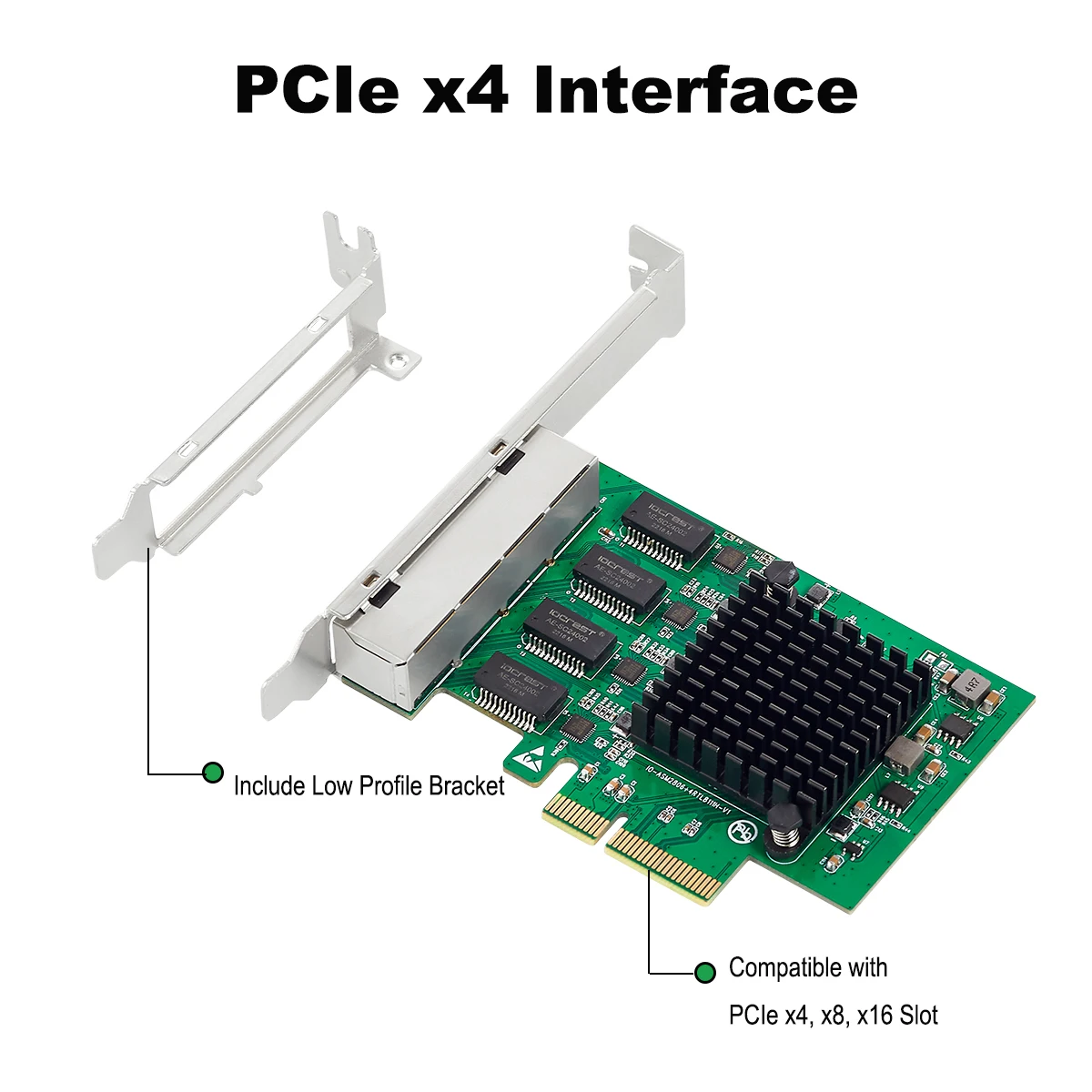 Comprar IOCREST-tarjeta controladora PCIe x4, 4 puertos, Gigabit, Ethernet, 1000Mbps, Chips NIC Realtek RTL8111H, diseñados para fundas pequeñas Lenovo