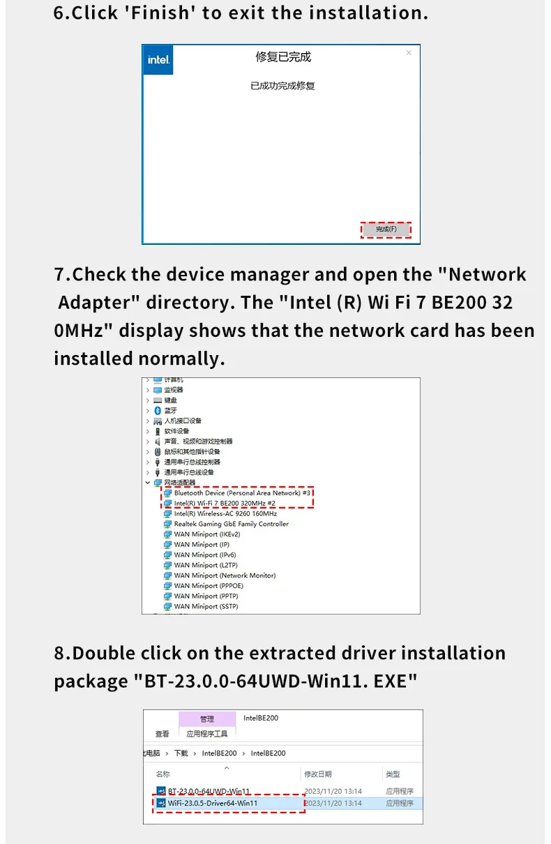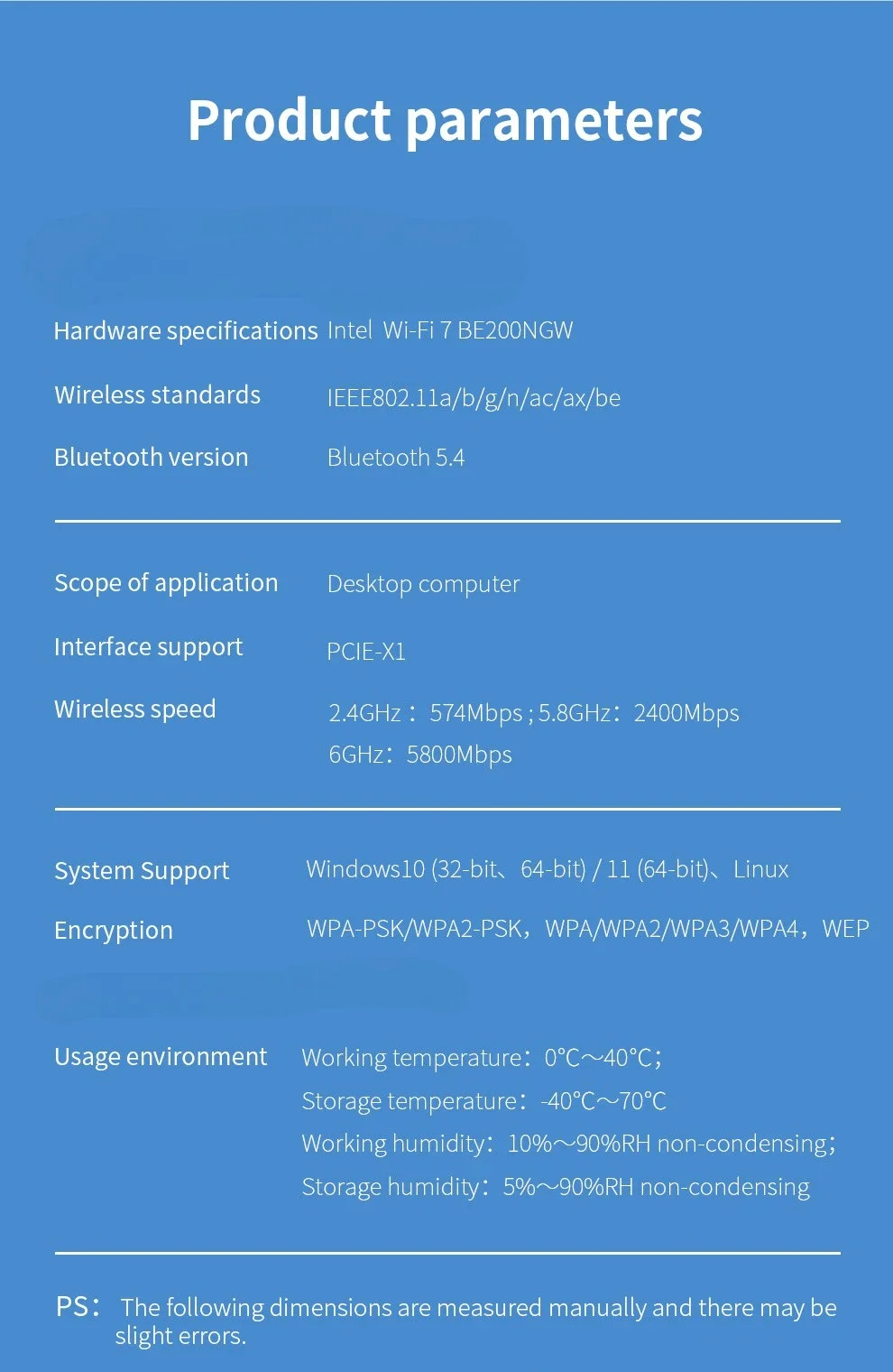 • 1 x Adaptador de red WiFi 7 PCIE con adaptador WiFi BE200