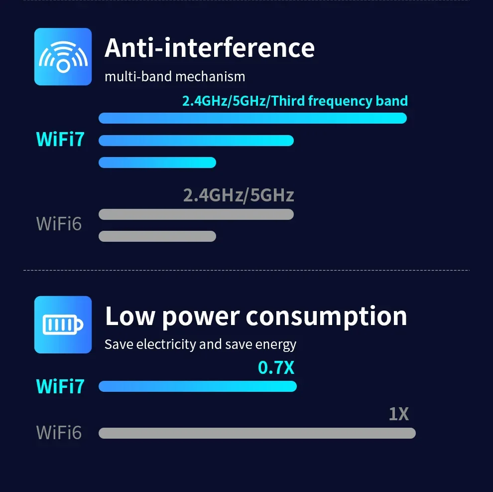 Este Wi-Fi/Bluetooth® El módulo admite Wi-Fi de doble flujo en las bandas de 2,4 GHz, 5 GHz y 6 GHz, así como Bluetooth® 5.42.Estas nuevas características maximizan los beneficios del Wi-Fi 7, incluida una velocidad de hasta 5 Gigabit 3, latencias ultrabaja y confiabilidad mejorada en nuevas frecuencias de radio exclusivas para dispositivos Wi-Fi 7, y brindan una mejora significativa en la experiencia del usuario en implementaciones densas., así como rango operativo ampliado para Bluetooth® dispositivos conectados y soporte para Bluetooth® Audio LE.