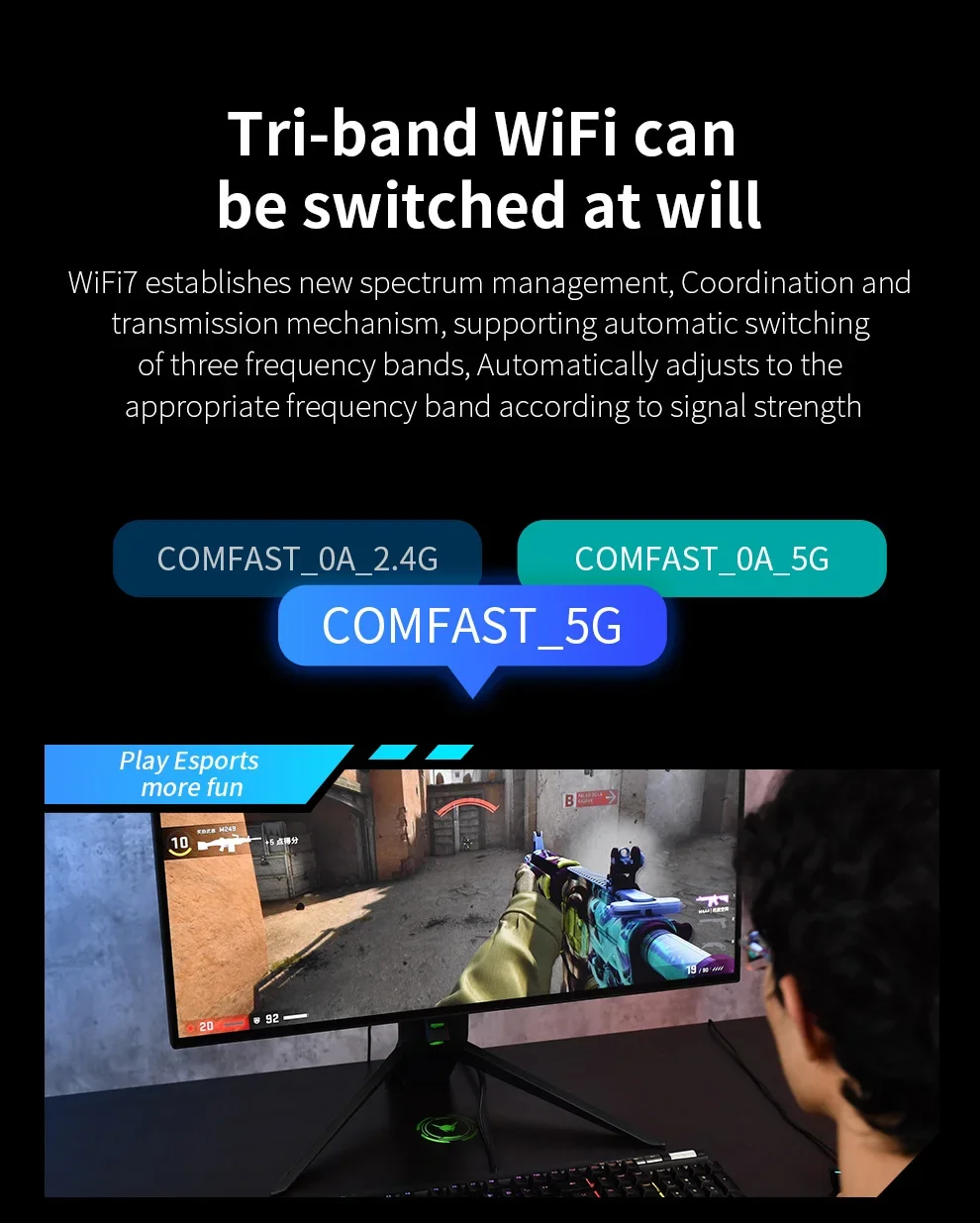 Soporte tecnológico Wi-Fi 7, CERTIFICADO por Wi-Fi* 6 con Wi-Fi 6E, CERTIFICADO por Wi-Fi* a/b/g/n/ac, WMM*, WMM*-Ahorro de energía, WPA3*, PMF*, Wi-Fi Direct *, Wi-Fi Agile Multibanda *, ubicación Wi-Fi R2 HW preparación