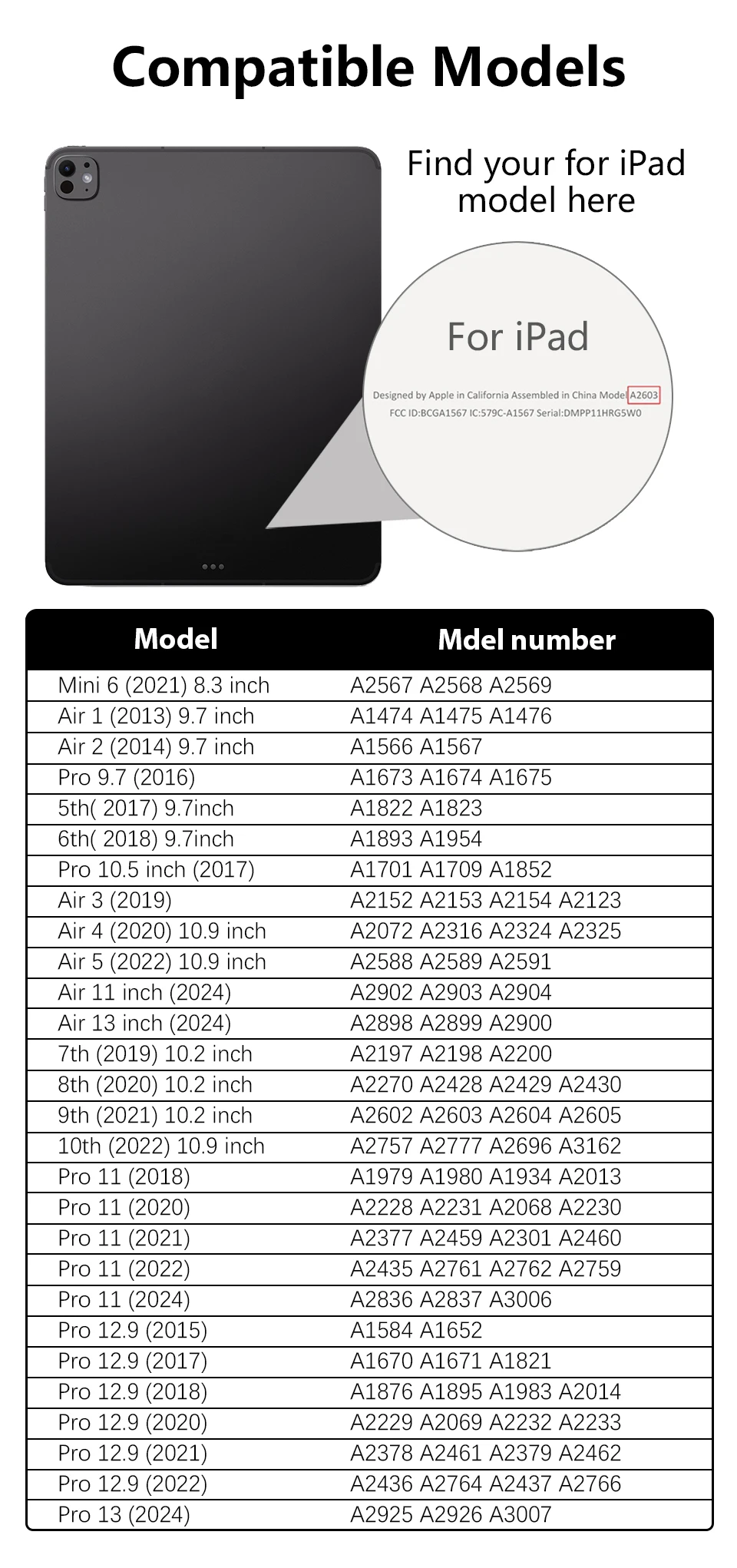 Attention: Dear friend, Pro 12.9 is suitable for 2018-2022, Pro 11 is suitable for 2018-2022. Pro 11 2024 has a separate purchase option