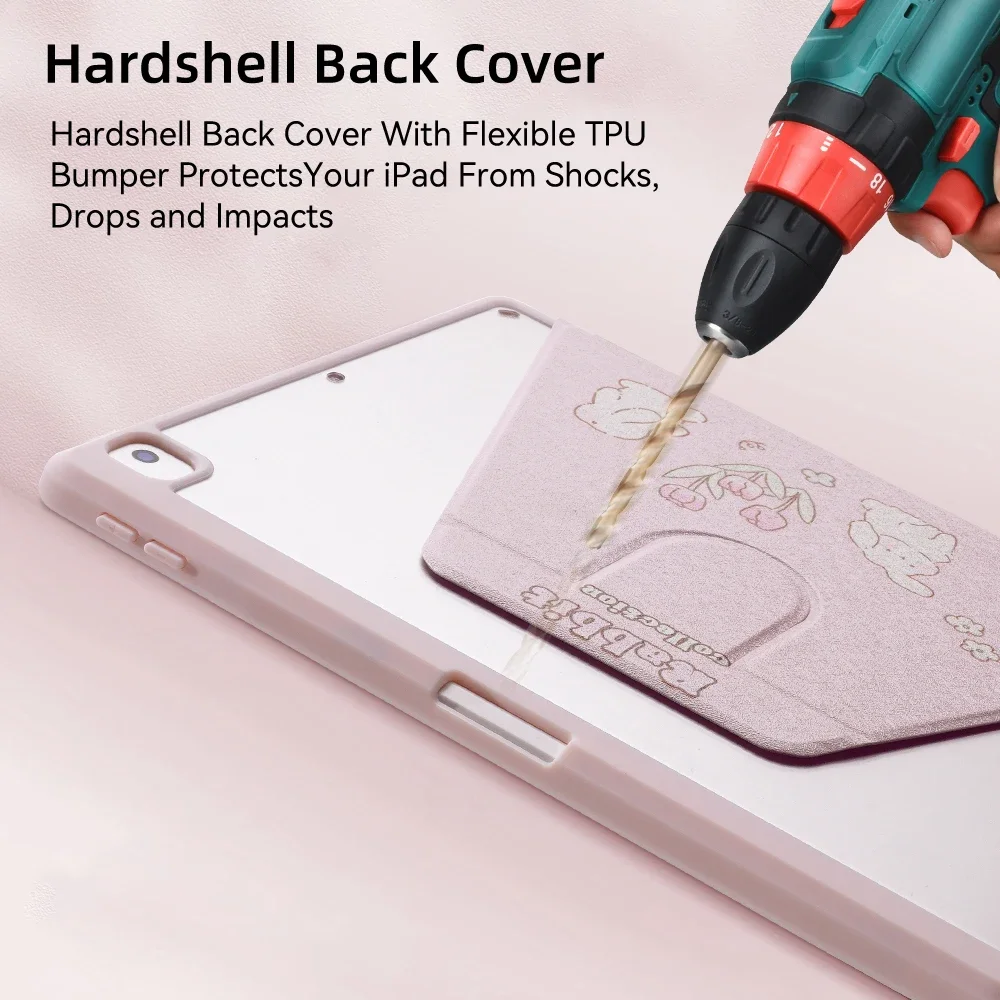 La cubierta trasera rígida con parachoques flexible de TPU protege su iPad de golpes, caídas e impactos