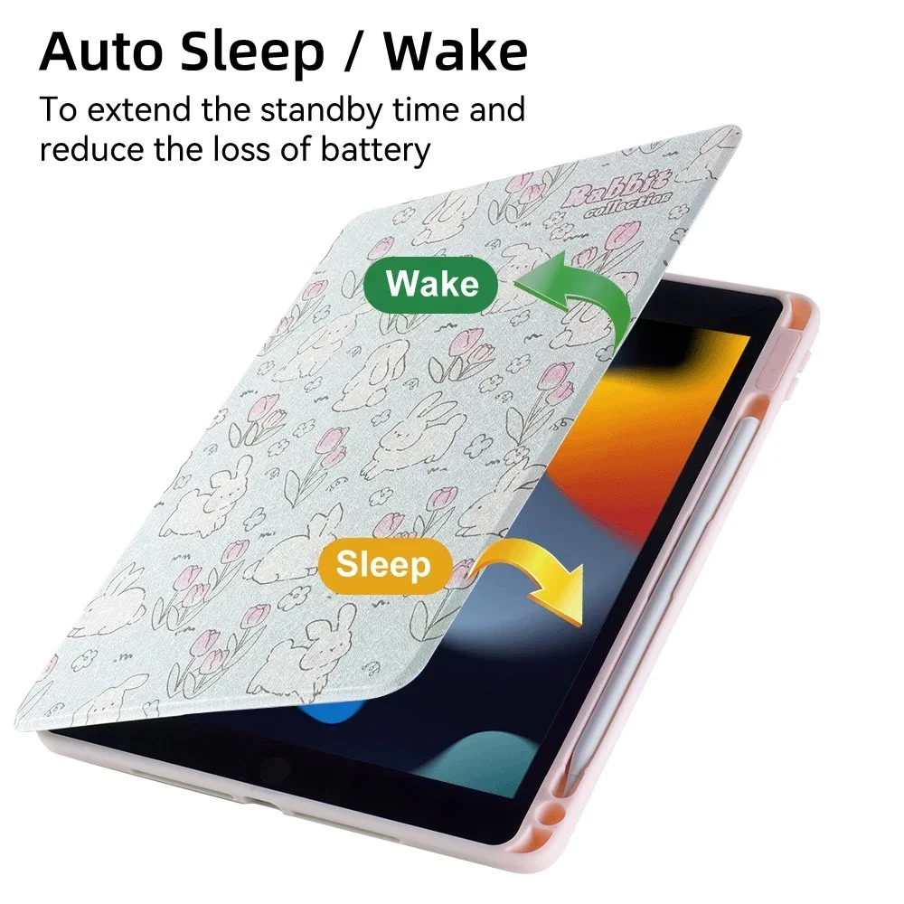 【Apagado/dormir automático】La tira magnética incorporada proporciona funciones de activación automática para dormir, lo que ahorra batería.(Retire la película protectora de la cubierta trasera transparente para mostrar el aspecto original de su dispositivo).