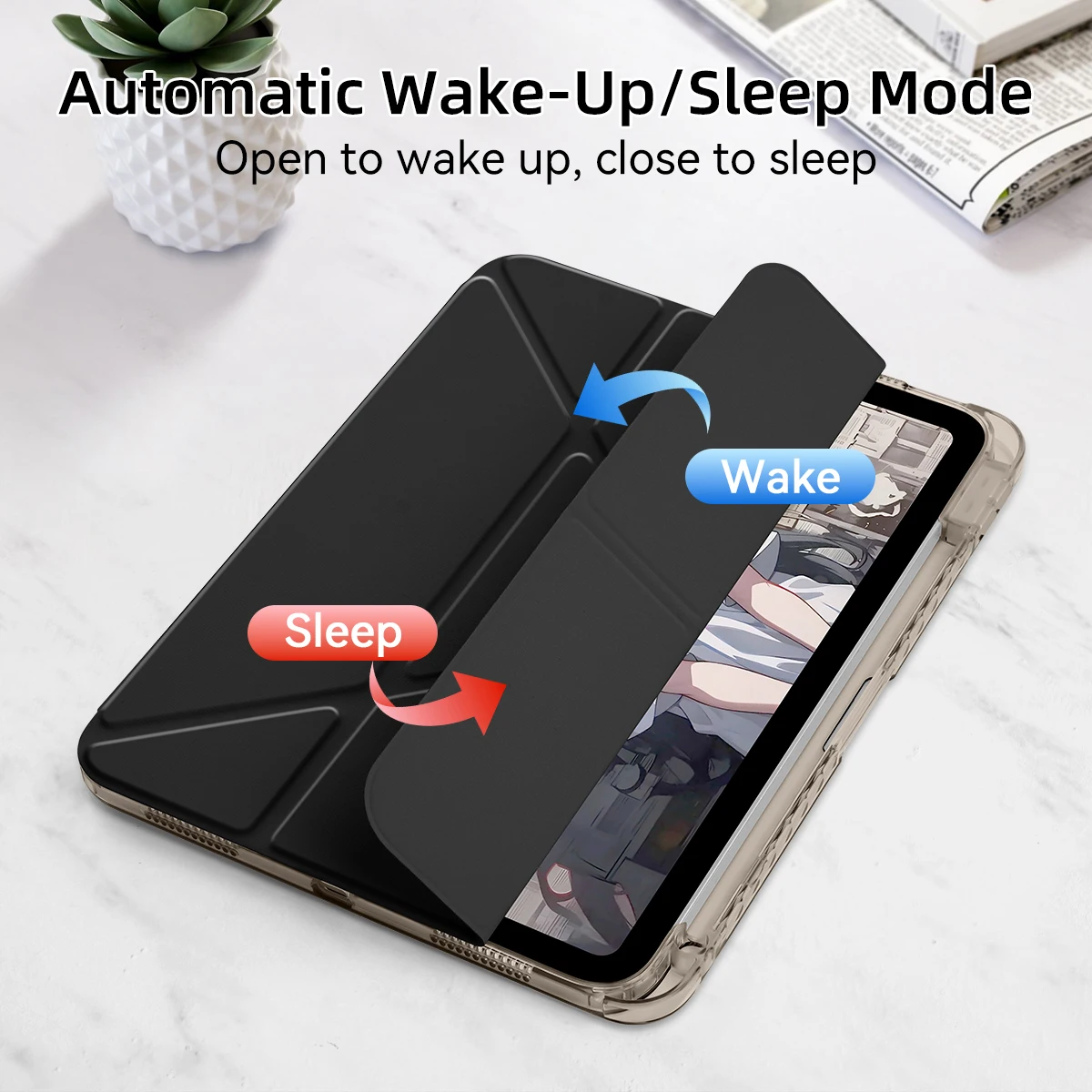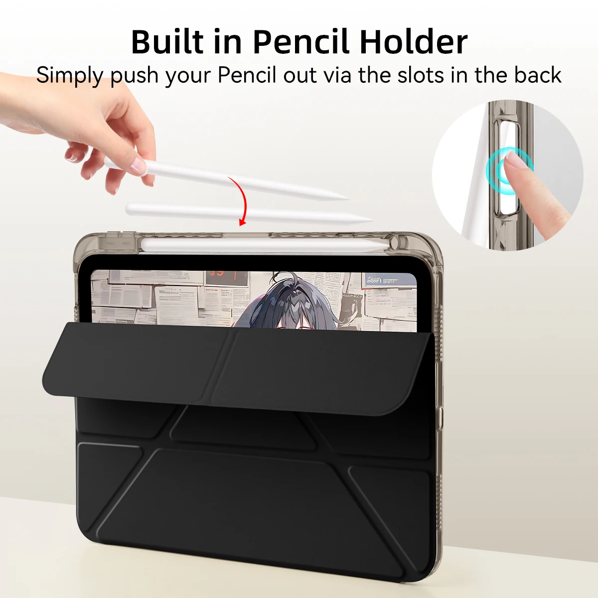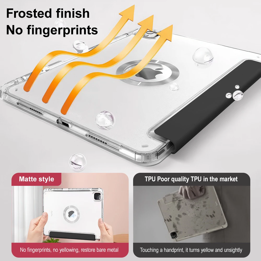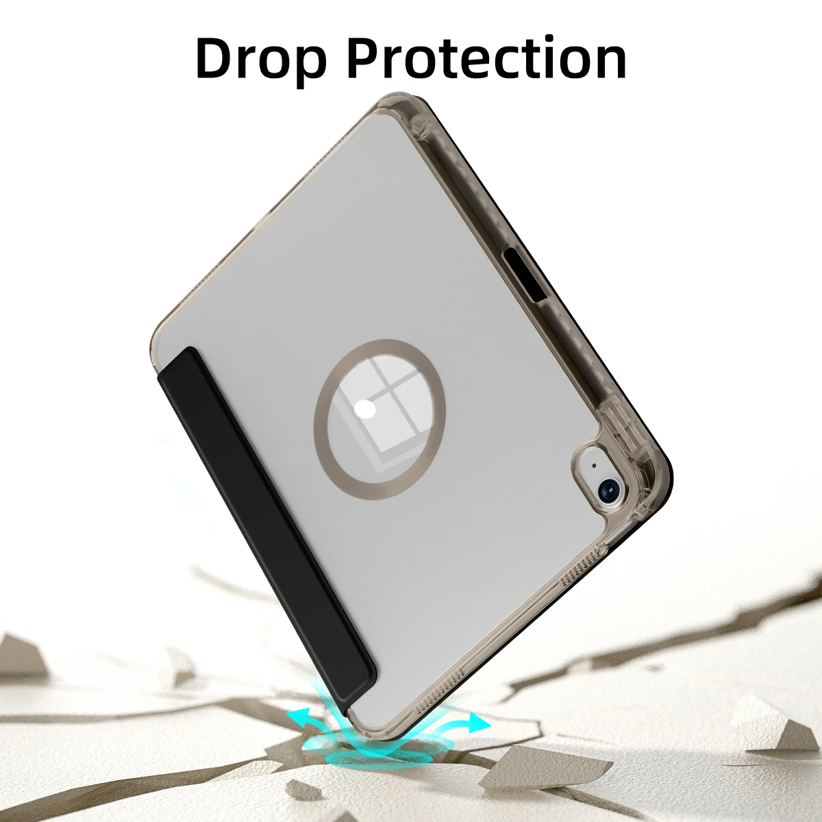 La resistente funda trasera transparente protege tu ipad