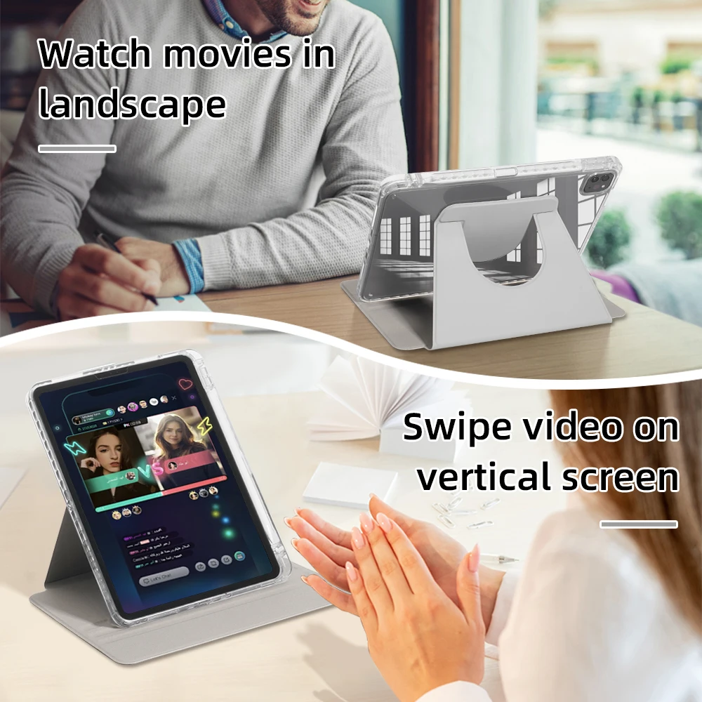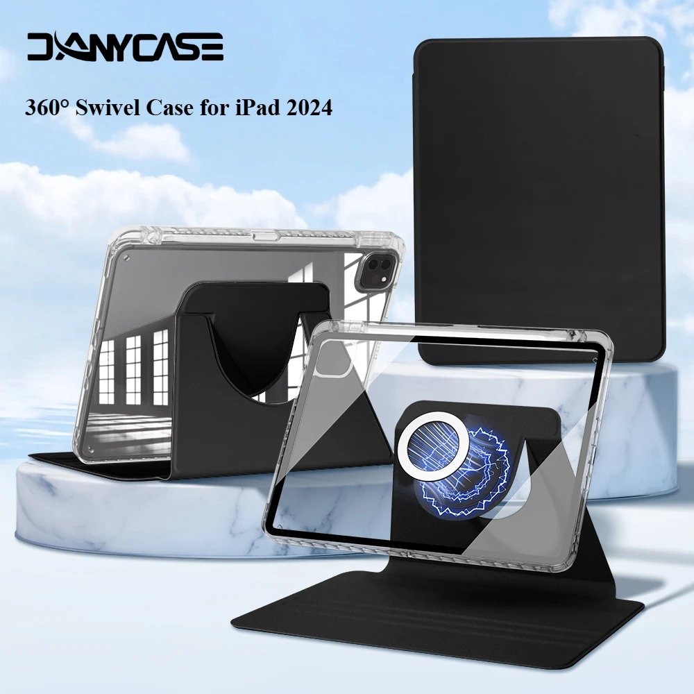 Comprar Para iPad 2024 Funda 360 ° Giratorio para iPad 10a Pro 11 12,9 Air 6/5/4 Fundas acrílicas transparentes para tableta Mini 6 de 5/6/7/8/9a generación