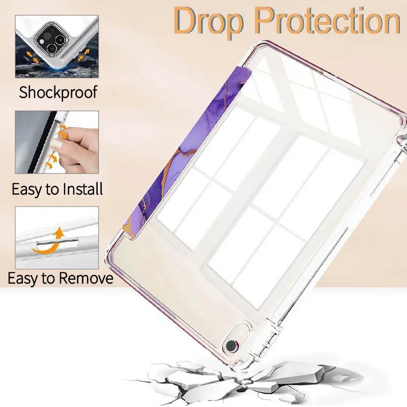 La cubierta trasera rígida con parachoques de TPU flexible protege su iPad de golpes, caídas e impactos.