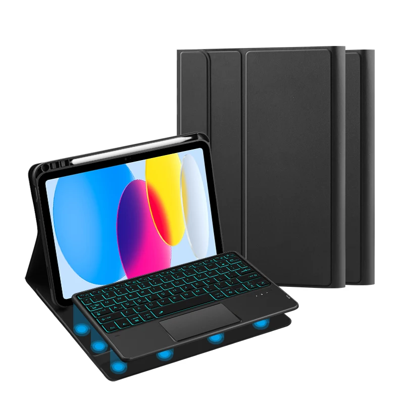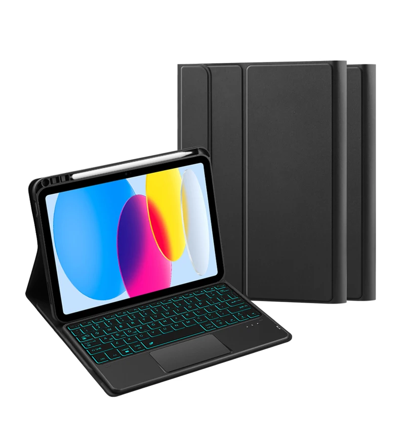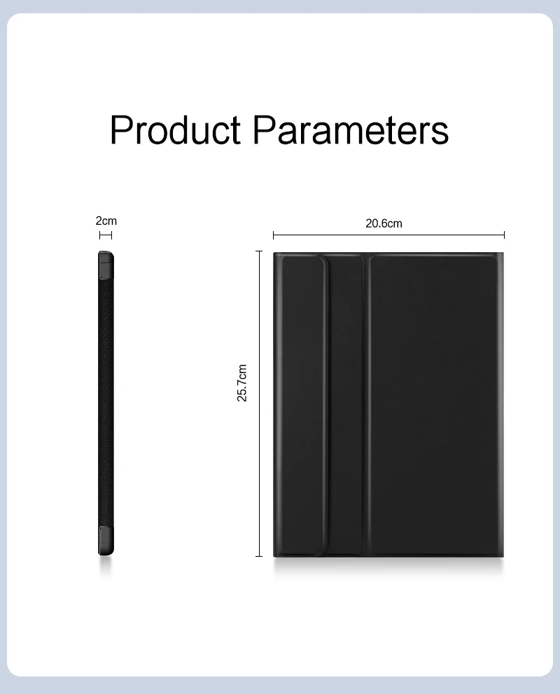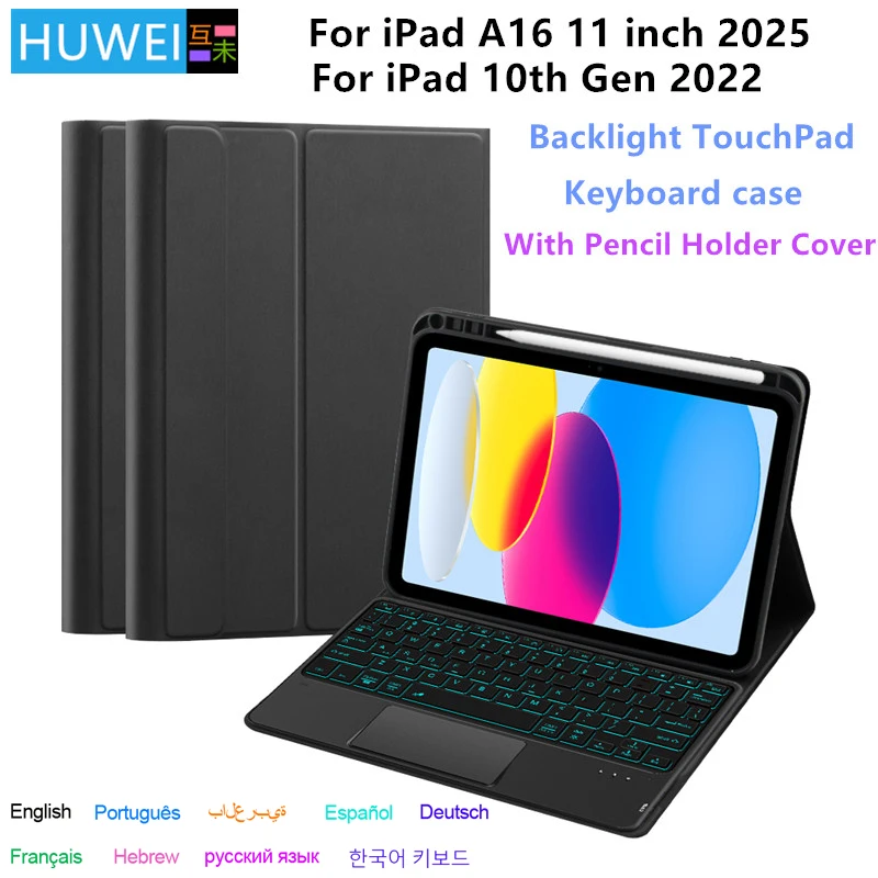 HUWEI es adecuado para protectores de teclado con retroiluminación táctil de iPad (se pueden seleccionar sin retroiluminación o sin tacto). Este protector de teclado viene con una ranura para lápiz para guardar su lápiz, lo que le permite desmontar el teclado y usar el protector por separado.¡Puede soportar la tableta, lo que le facilita su uso para el trabajo y el entretenimiento!