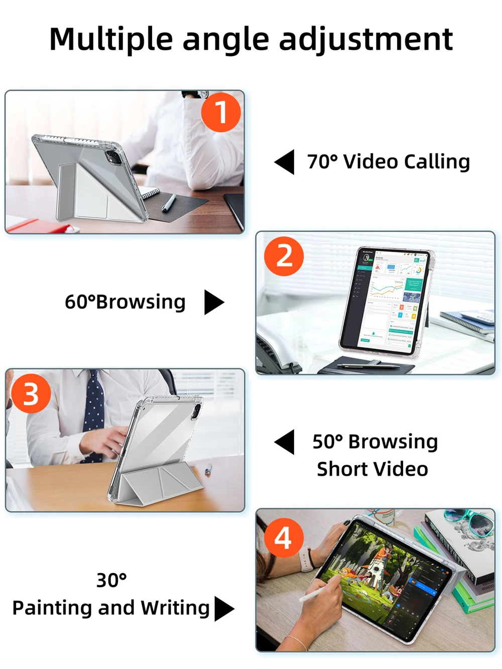 [Estable, resistente, ajustable]:Protección integral para tu Apple iPad.Fabricada con materiales de alta calidad, puede configurar la funda de su iPad en múltiples ángulos de soporte horizontal para ver o escribir, sin estar limitado por el ángulo.