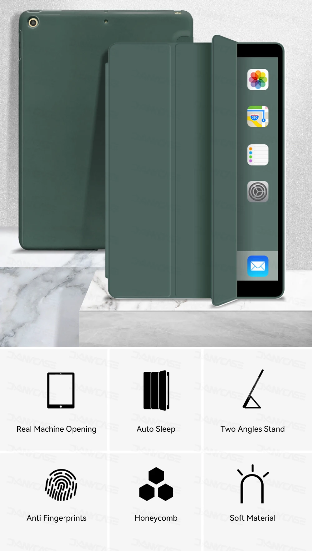 Nuestro producto utiliza parte posterior de TPU suave, no agrieta el iPad y nunca deja rayones.
