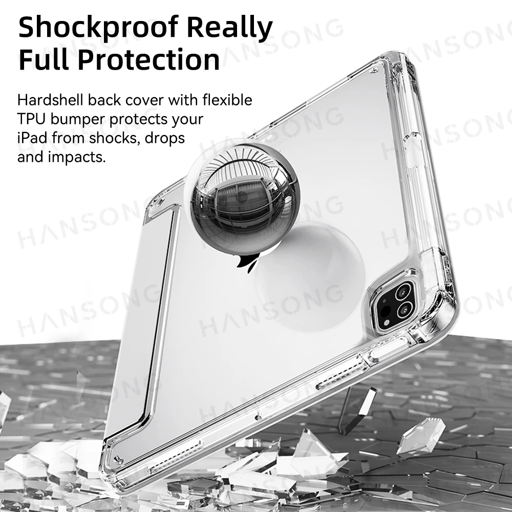 La cubierta trasera rígida con parachoques flexible de TPU protege tu iPad de golpes, caídas e impactos.