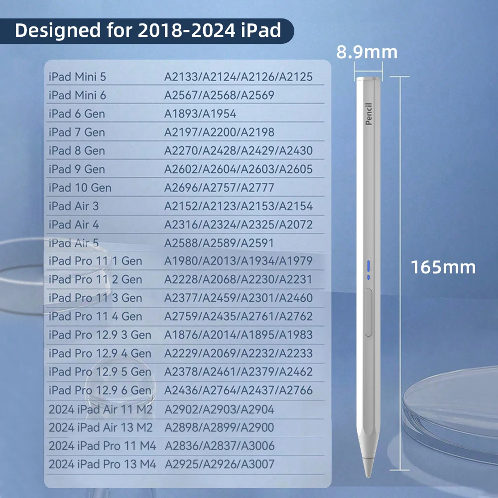 ❤ 【Asegúrese de que su modelo de iPad sea compatible】El lápiz óptico es compatible con los modelos de la serie iPad 2018-2024: NUEVO iPad Air 2024 de 11 pulgadas y 13 pulgadas (M2), iPad Pro de 11 pulgadas y 13 pulgadas (M4), iPad 10 / 1/8/7/6 generación, iPad Air 3/4/5 generación, iPad Pro 11 pulgadas 1/2/3/4 generación, iPad Pro 12. 9 pulgadas 3/4/5/6 Gen, iPad Mini 5/6 Gen. (NOTA: El Pencil A8 NO es compatible con los modelos de iPad antes de 2018, iPhone, dispositivos Android y Microsoft. Comprueba el modelo de tu producto antes de realizar un pedido).